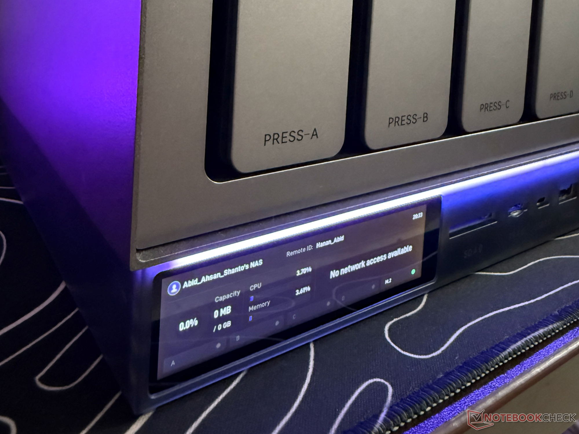 A prima vista, Zettlab D4 sembra un lontano cugino della Steam Machine. Per esempio, proprio come PC da gioco di Valveil NAS ha una striscia LED, ma questa è più che altro un elemento estetico. Il display LCD integrato è un tocco di classe, che offre una visione rapida delle operazioni in corso.