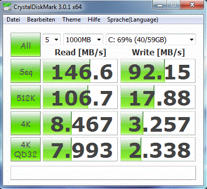 Un tempo di accesso di 0.5 ms (lettura) e 2.5 ms (scrittura) sono valori scarsi. Gli SSDs in genere si attestano tra 0.1 e 0.3 ms. Difficilmente abbiamo avuto un'impressione simile per un solid state drive installato su un notebook nell'utilizzo pratico. I tempi di booting e di trasferimento sono marginalmente migliori rispetto ad un veloce HDD da 7200 HDD.