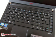 La tastiera è adatta solo in parte a chi desidera scrivere molto. Diversamente dagli altri dispositivi (i.e. Aspire 5755G), Acer usa ancora la sua vecchia tastiera. I tasti, separati da piccoli spazi, sono di dimensioni piacevoli (16x16 millimetri), ma hanno un punto di pressione poco chiaro, ed una battuta con un feedback scarso. Inoltre, i tasti vibrano. Il rumore dalla digitazione non dà impressione di qualità elevata.