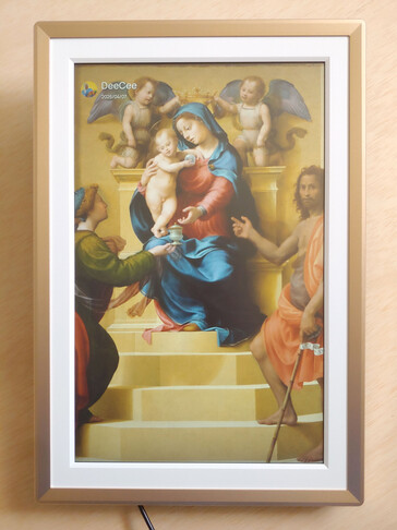 Lo schermo aggiunge un tocco pop alle opere d'arte come i dipinti a olio, che appaiono con colori un po' più saturi rispetto agli originali.