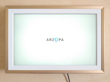 Arzopa da 14 pollici ha l'aspetto di una cornice fotografica ed è dotato di un touchscreen LCD opaco che offre una discreta visione fuori asse e riflessi ben attenuati. Può essere posizionato su una scrivania utilizzando il supporto in metallo o essere montato a parete.