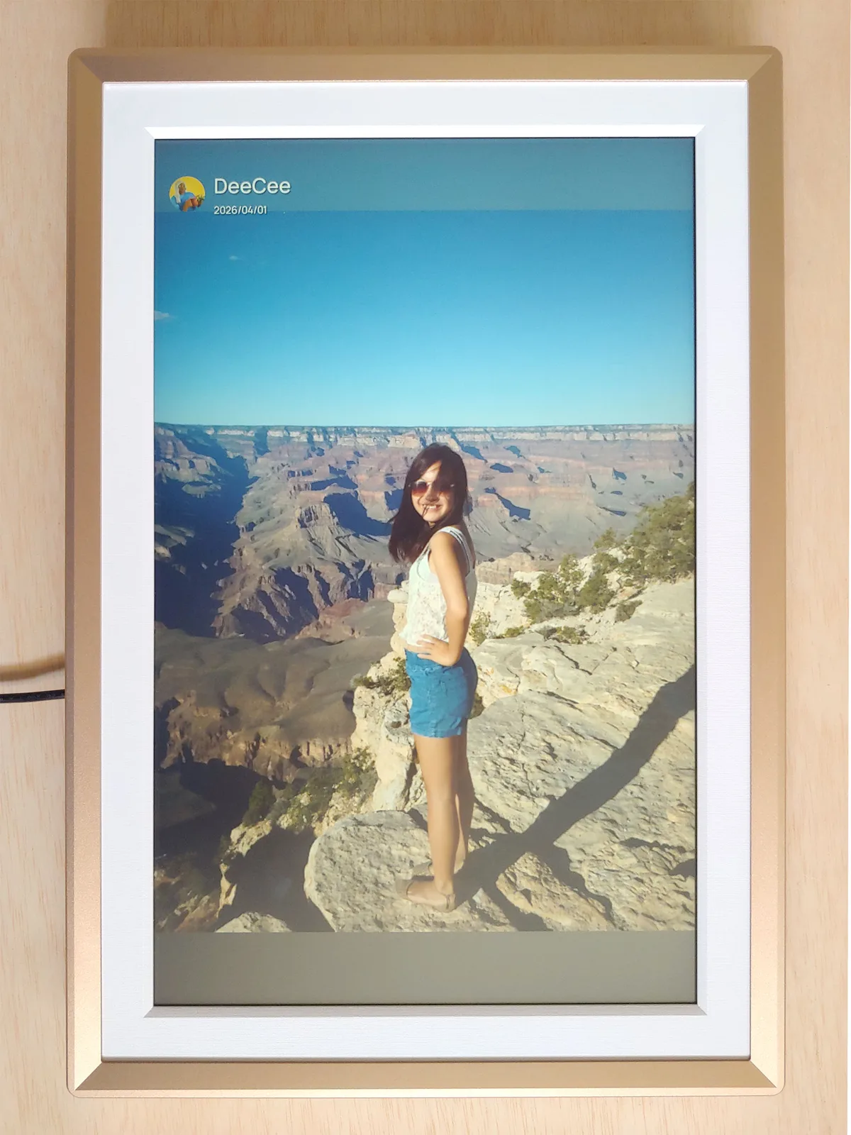 La cornice digitale Arzopa D14 visualizza un flusso infinito di immagini memorizzate nel cloud, e nuove immagini possono essere aggiunte in remoto da amici e familiari.