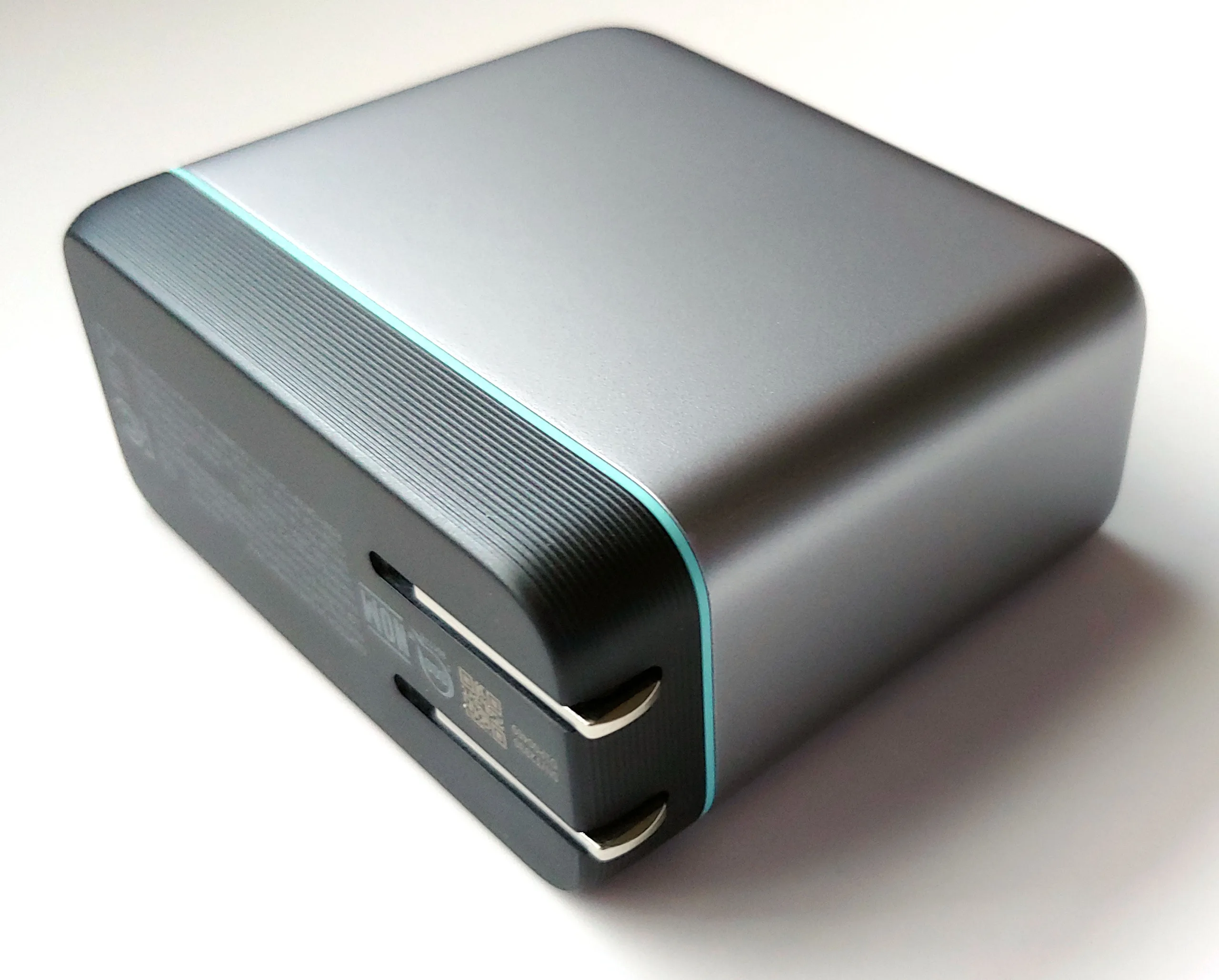 Il caricatore CA non ha avuto problemi a caricare o alimentare simultaneamente una serie di dispositivi, tra cui smartphone, power bank, radio, cuffie, computer portatili e giocattoli, a velocità simili o superiori ai caricatori OEM. Durante i test, la massima potenza durante la ricarica multidispositivo è stata raggiunta quando la porta USB-A non è stata utilizzata.