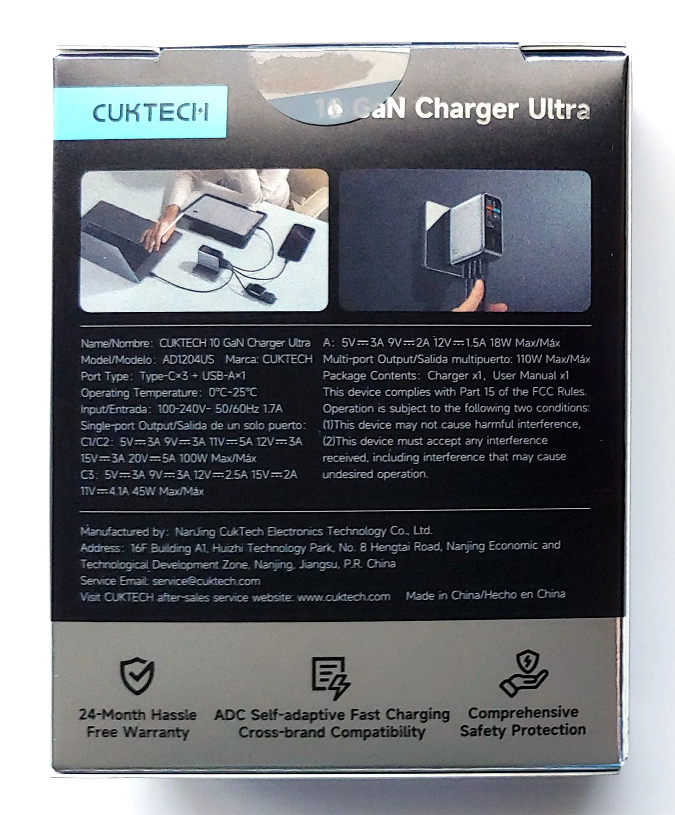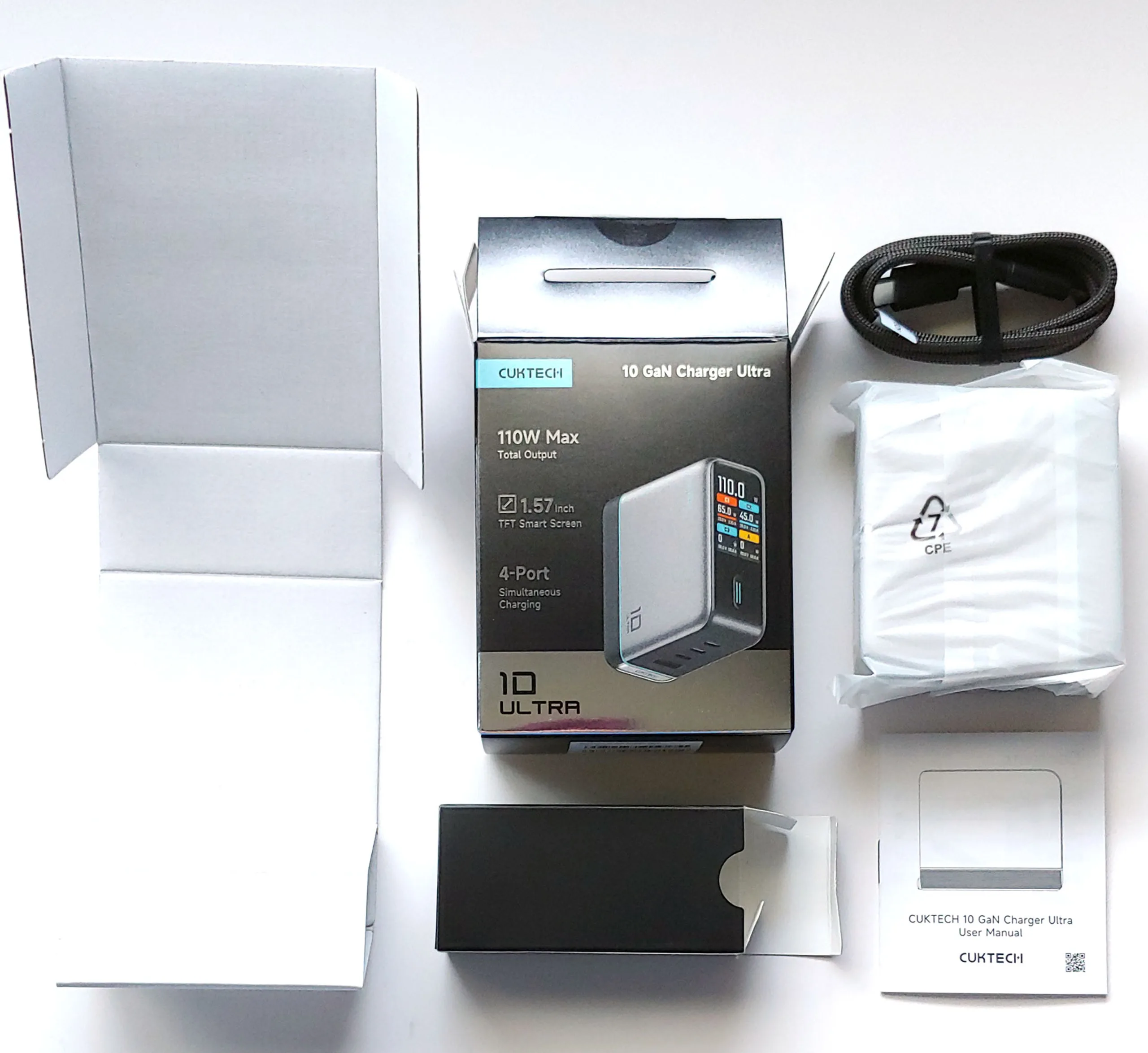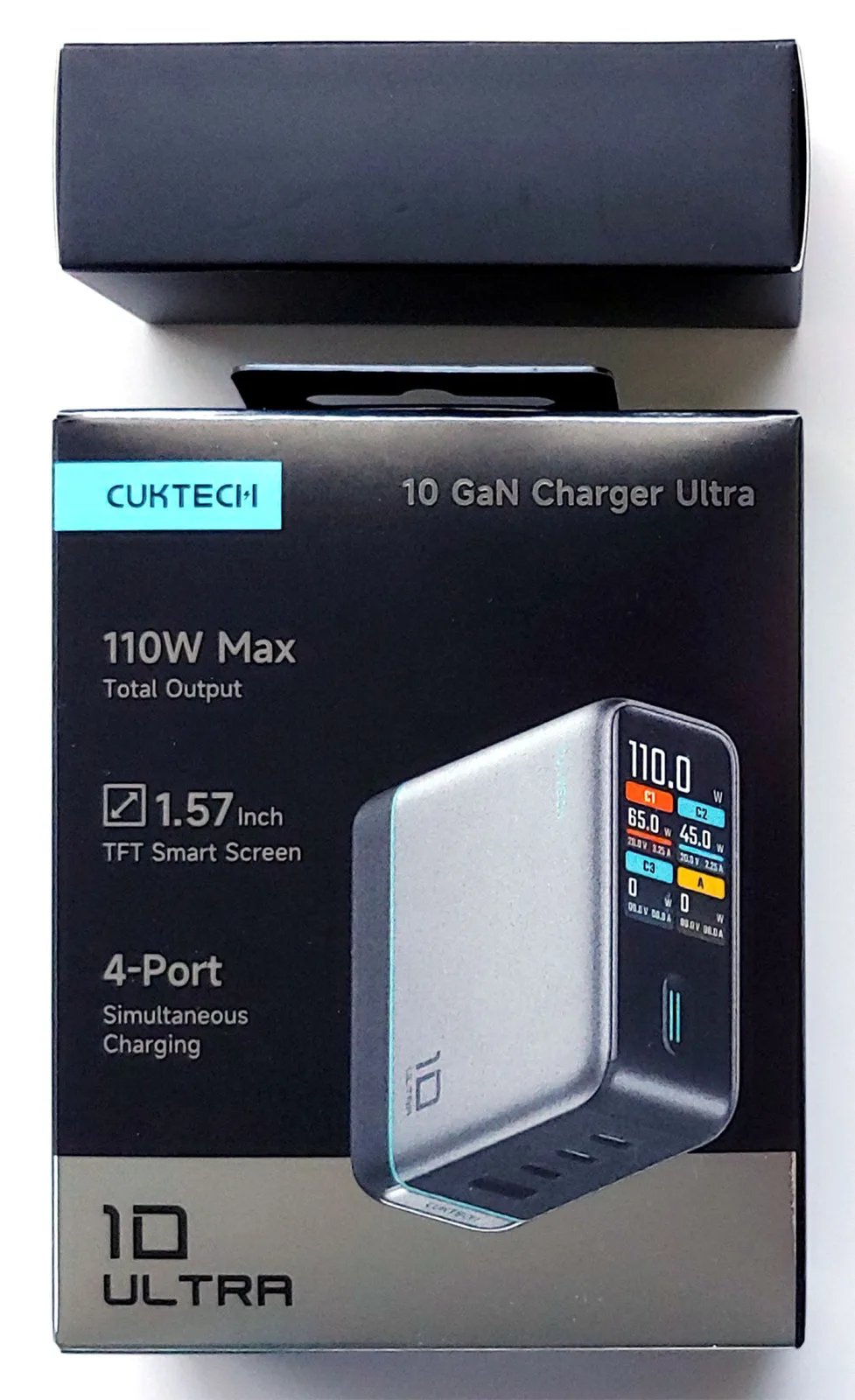 Per ricaricare i dispositivi con Cuktech 10 Ultra è sufficiente collegare un dispositivo, che accenderà automaticamente il caricatore e inizierà la ricarica. Solo le porte USB-C 1 e 2 possono erogare un massimo di 100 watt (quando si utilizza una sola porta). Quando si utilizzano più porte, il caricatore può erogare un massimo di 110 watt, ma con l'uscita di ciascuna porta limitata. Inoltre, le perdite di energia, la temperatura, il cablaggio e altri fattori possono limitare le prestazioni di erogazione di energia.