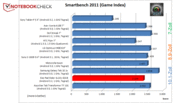 Il benchmark Quadrant (test CPU, GPU) non l'abbiamo potuto eseguire. Lo Slider è a metà classifica nello Smartbench 2011 (test CPU, GPU). Questo vale sia per la produttività che per il game index. Quest'ultimo resta leggermente dietro i sistemi Tegra 2 ad uno sguardo ravvicinato. Il Samsung Galaxy S2 smartphone con una GPU 2 x 1.2 GHz Exynos 4210 attualmente arriva a circa 3600 punti di game index. L'LG Star arriva a circa 3115. Quindi, lo sviluppo è evidente; il Tegra 2 è sul mercato da circa un anno e Nvidia sta pensando al successore Kal-El.