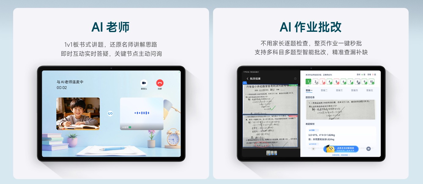 Ciò che lo distingue dalla versione standard è la custodia robusta colorata e lo stilo intelligente inclusi. La custodia è dotata di una chiusura, di uno slot per lo stilo e il suo coperchio può essere piegato per fungere da cavalletto. Inoltre, Xiaomi ha aggiunto un insegnante AI che utilizza un metodo di insegnamento 1 contro 1 simile a quello di una classe, con sessioni di domande e risposte in tempo reale durante l'insegnamento.