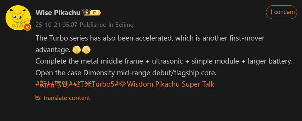 Secondo il popolare account Weibo Smart Pikachuxiaomi non ha ancora finito di rilasciare smartphone Redmi quest'anno. Una volta terminata la serie Redmi K90, si dice che l'azienda stia per passare alla seconda generazione di Redmi Turbo. In particolare, Smart Pikachu sostiene che Xiaomi abbia 'accelerato' il suo prossimo dispositivo Redmi Turbo, dopo aver lanciato il Redmi Turbo 3 nell'aprile 2024, con Redmi Turbo 4 e Redmi Turbo 4 Pro che seguiranno rispettivamente nel gennaio 2025 e nell'aprile 2025.