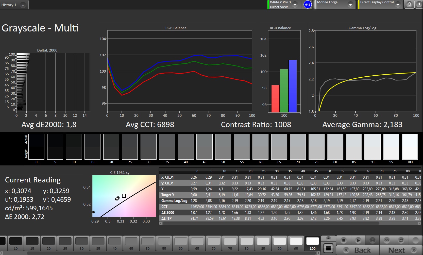 Ciò significa che può lavorare anche in ambienti luminosi senza problemi. La visualizzazione dei colori è impressionante, con un'elevata precisione nella modalità Original Color Pro. Se lo desidera, i colori possono anche essere regolati automaticamente in base alla luce ambientale.