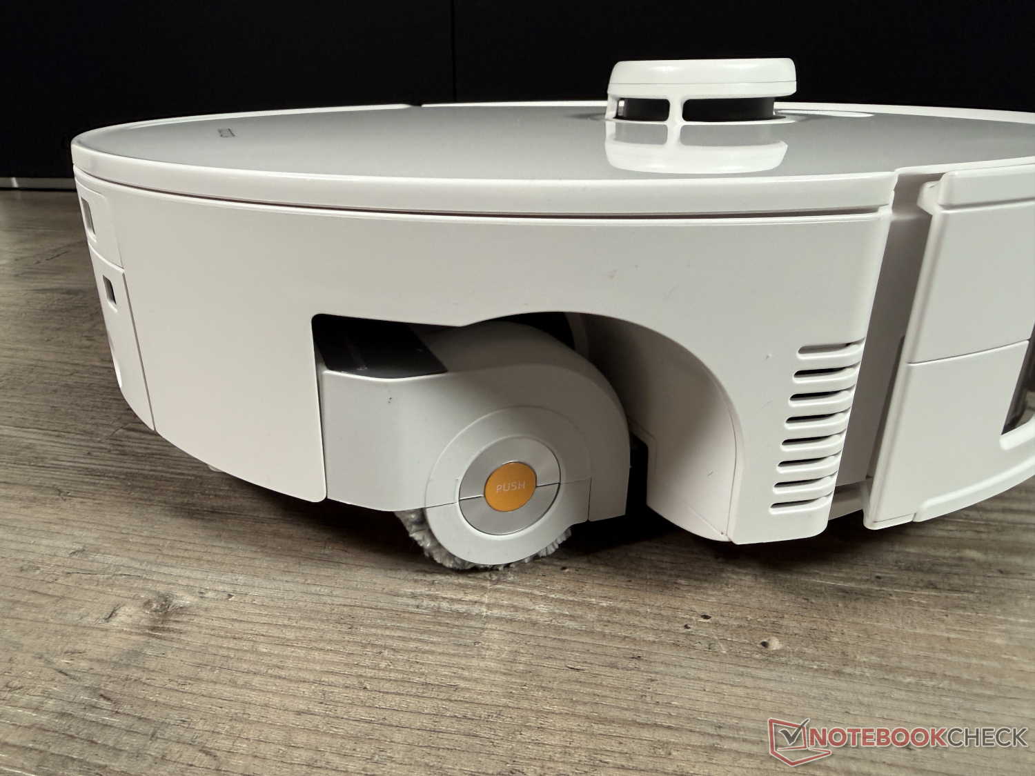 Roborock utilizza per la prima volta un rullo di pulizia nel Qrevo Curv 2 Flow, avendo in precedenza solo modelli con un panno vibrante panno vibrante o due spazzoloni rotanti nel portafoglio. Con i suoi 27 cm, è piuttosto largo e può essere esteso anche lateralmente. Tuttavia, a causa della distanza di sicurezza di pochi millimetri tra il rivestimento in plastica e i mobili e simili, la pulizia non è così fluida come con i classici mop con funzione estensibile.
