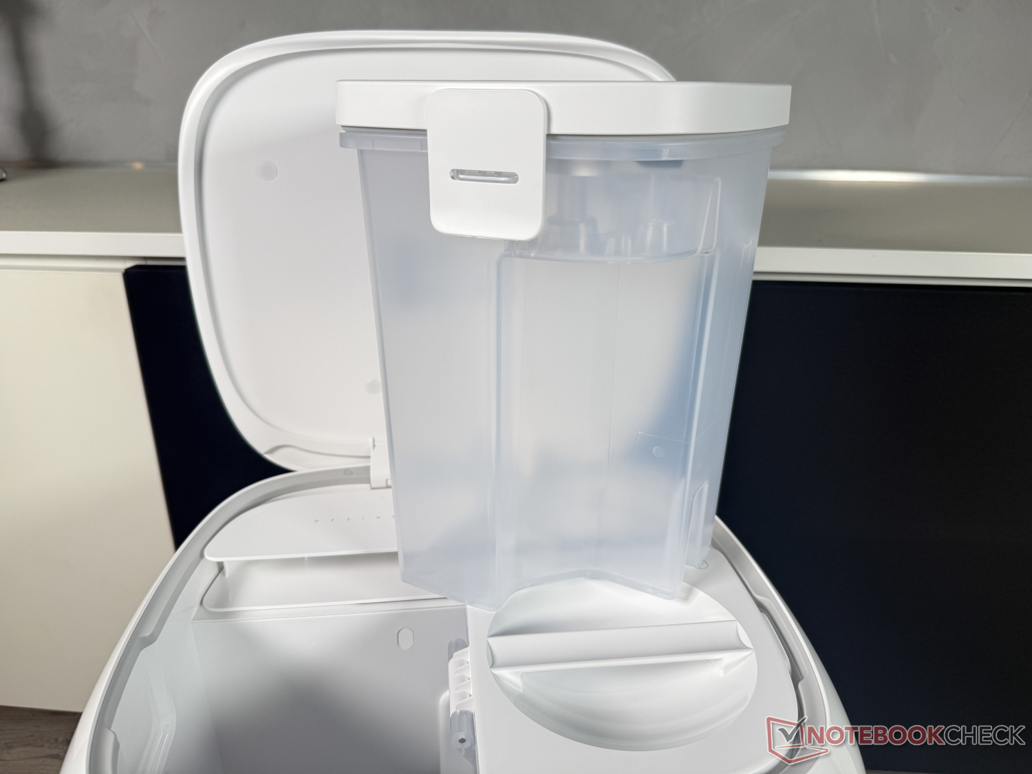 La rigenerazione nella stazione ha funzionato in modo affidabile, in modo che il mop a forma di rullo fosse sempre bello e pulito. Oltre alla mancanza di autopulizia nella stazione, un aspetto negativo del test è stato che la stazione di pulizia era piuttosto rumorosa, con circa 45 dB (misurati da 1 m di distanza) quando il rullo di lavaggio si asciugava. Roborock Qrevo Curv 2 Flow è molto più udibile e quindi più evidente per alcune ore rispetto ad alcuni dei suoi concorrenti. Questo deve essere tenuto presente se la stazione deve essere collocata direttamente nell'ambiente abitativo.