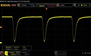 Serie di misurazioni con livello di zoom fisso e diverse impostazioni di luminosità (la curva di ampiezza alla luminosità minima sembra piatta, ma ciò è dovuto alla scalatura. Il riquadro informativo mostra la versione ingrandita dell'ampiezza alla luminosità minima)
