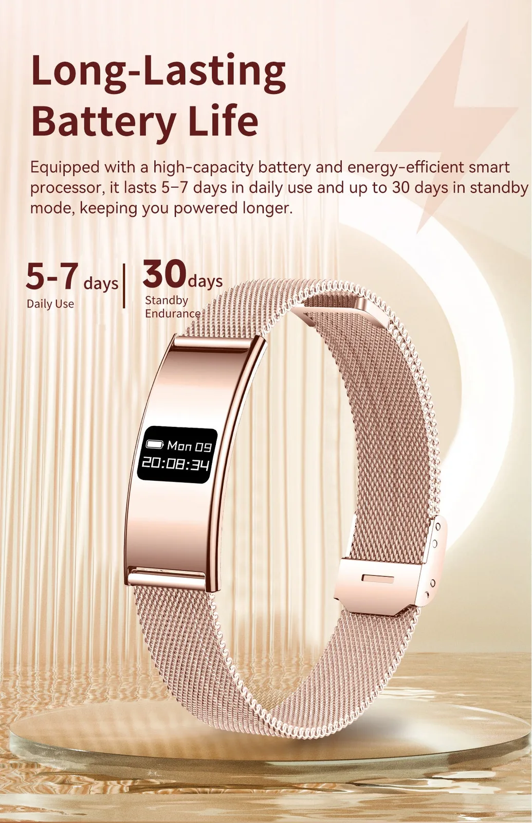 Le smartband sottili in metallo stanno diventando più importanti per il loro aspetto al polso che per il numero di funzioni che possono contenere. Rogbiddel nuovo braccialetto Vogue si inserisce proprio in questo spazio. Viene commercializzato come un gioiello per tutti i giorni, che si presta anche a tracciare la sua salute. L'azienda afferma che misura 2,8 mm di spessore, il che lo rende il braccialetto intelligente per la salute più sottile al mondo.