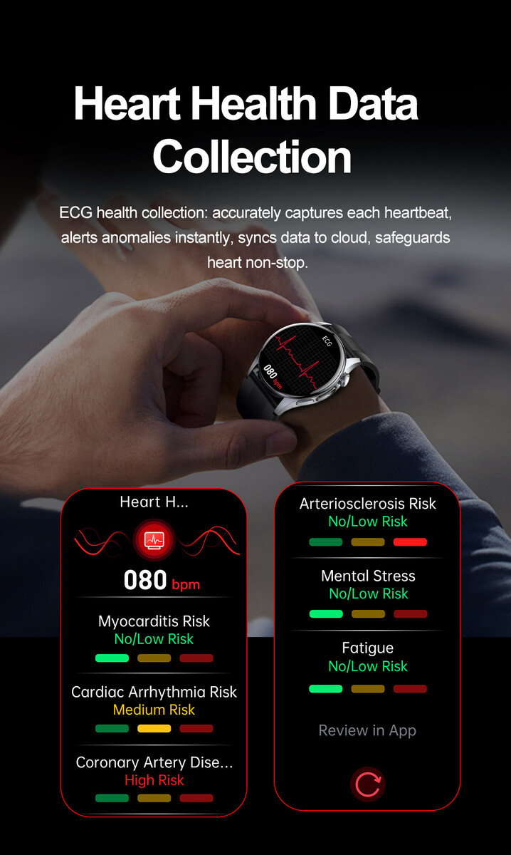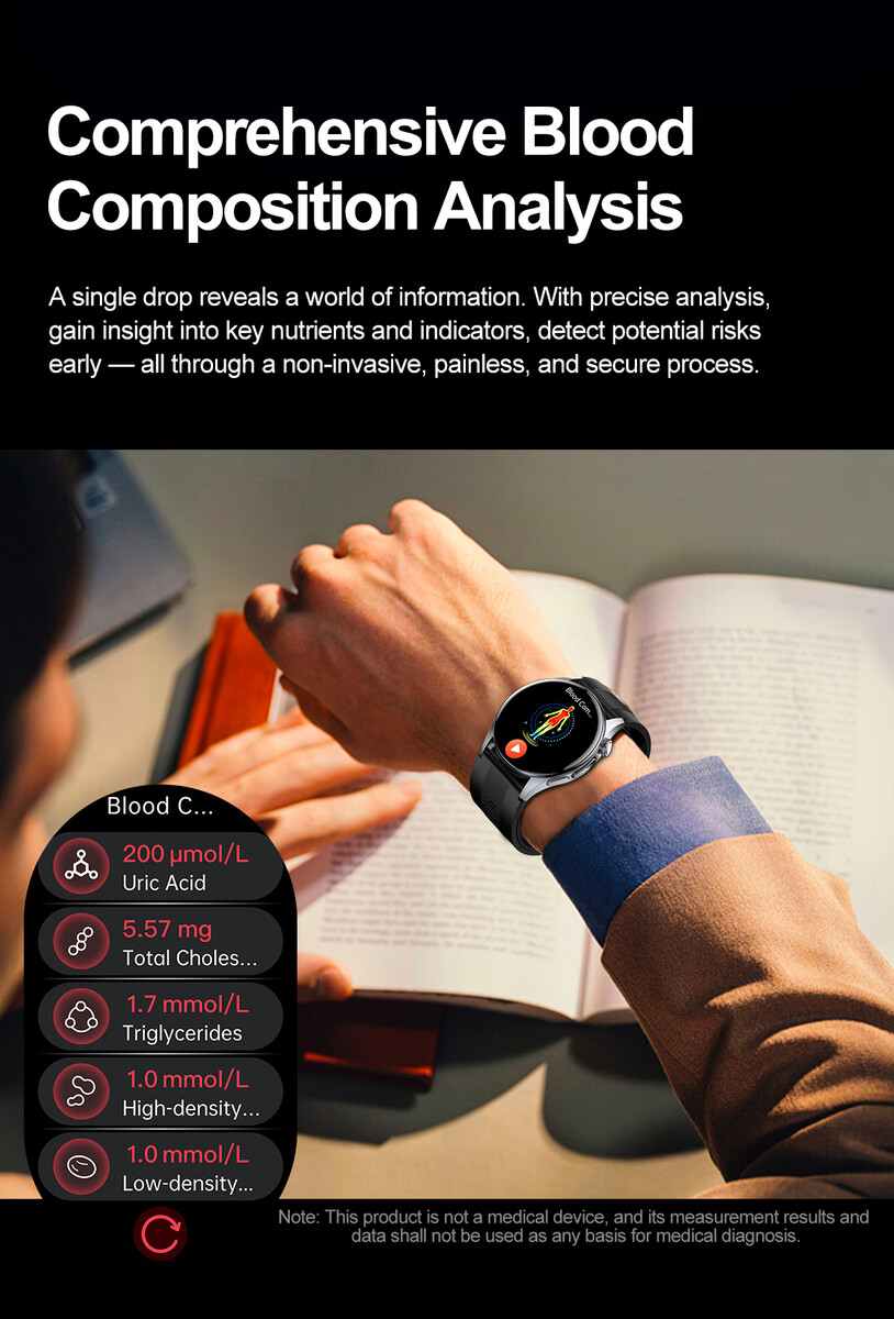 L'orologio utilizza un display AMOLED da 1,56 pollici (480×480), che è l'interfaccia principale per i dati sanitari. Il lato destro ospita una corona rotante, un'area touch dedicata all'ECG e un tasto di scelta rapida che apre la funzione di pressione sanguigna. Internamente, Rogbid ha optato per un sistema di airbag sigillato abbinato a una micro-pompa piezoelettrica di Murata. L'azienda sostiene che ciò consente un gonfiaggio e uno sgonfiaggio controllati per le letture della pressione sanguigna, oltre a un flusso d'aria stabile e a perdite ridotte. Le prestazioni nell'uso quotidiano dipenderanno dall'adattamento del polso e dal movimento dell'utente, poiché le letture del polso basate sulla pressione variano tipicamente in condizioni reali.