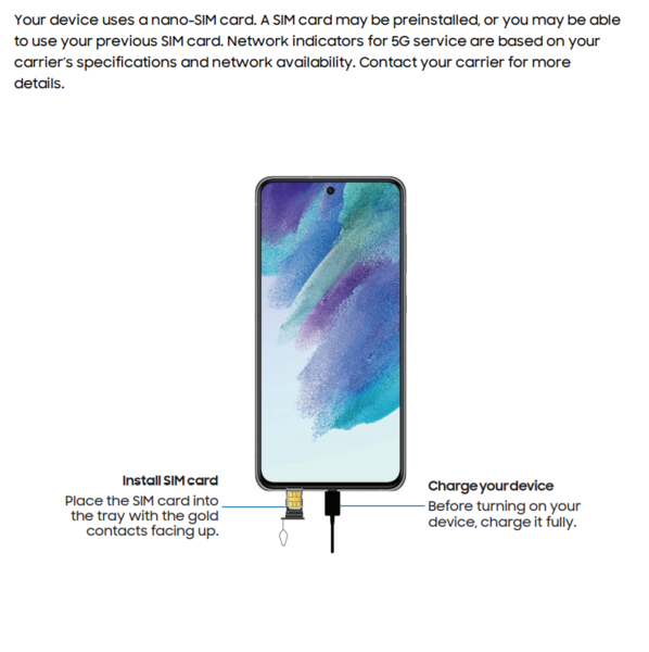 Anche il supporto DeX wireless è integrato, ma non c'è un jack per cuffie da 3,5 mm. Questo non dovrebbe essere una sorpresa però, dato che il Galaxy S20 FE non ne ha nemmeno uno. Tuttavia, il manuale utente non menziona un lettore di schede microSD, che lo smartphone Fan Edition dell'anno scorso ha.
