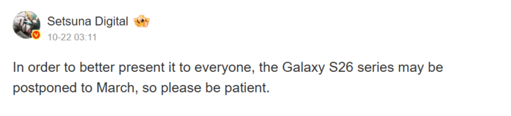 Le prime indiscrezioni su un lancio a marzo della famiglia Galaxy S26 provengono dalla Grecia. Secondo un rapporto proveniente dal Paese dell'Europa meridionalei fan di Samsung potrebbero dover aspettare due mesi in più del previsto per il successore dell'S25 Ultra Galaxy S25 Ultra (disponibile qui su Amazon). All'epoca, eravamo leggermente scettici sul fatto che il lancio sarebbe stato effettivamente posticipato così tanto. Tuttavia, un numero crescente di fonti indica un ritardo sostanziale. L'apprezzato leaker Setsuna Digital ha rivelato su Weibo che la serie Galaxy S26 potrebbe essere presentata solo nel marzo 2026