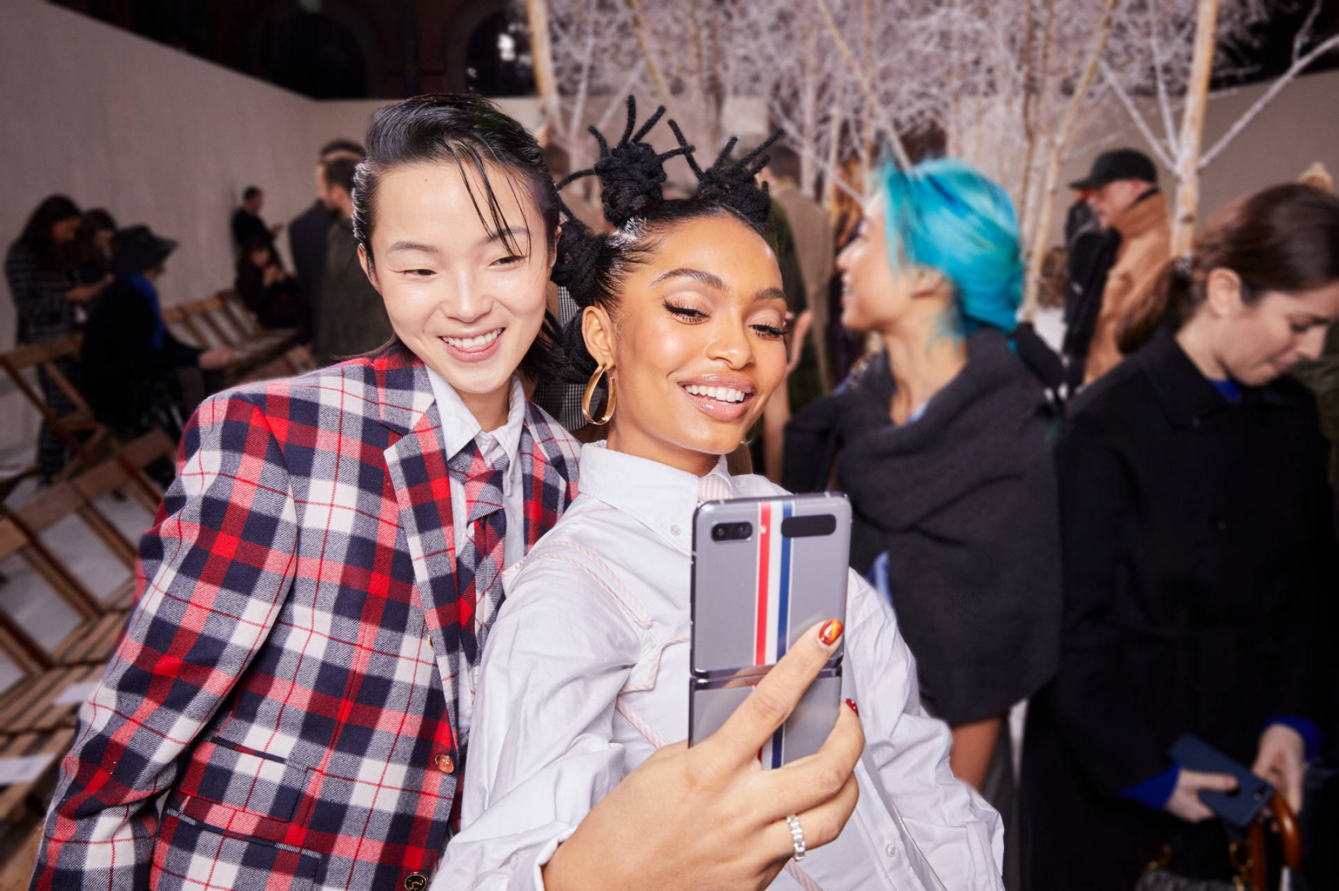 Anticipato durante lo scorso Samsung Unpacked, Galaxy Z Flip Thom Browne Edition è una edizione speciale del secondo pieghevole di Samsung caratterizzato da un design esclusivo e dai colori distintivi del brand. Alcune delle decorazioni sono direttamente ispirate ai celebri completi disegnati dallo stilista Thom Browne: sfondo grigio e dettagli colorati che replicano i colori tipici del brand statunitense.