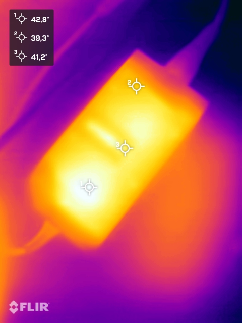 (±) Il lato inferiore si riscalda fino ad un massimo di 43 °C / 109 F, rispetto alla media di 36.6 °C / 98 F