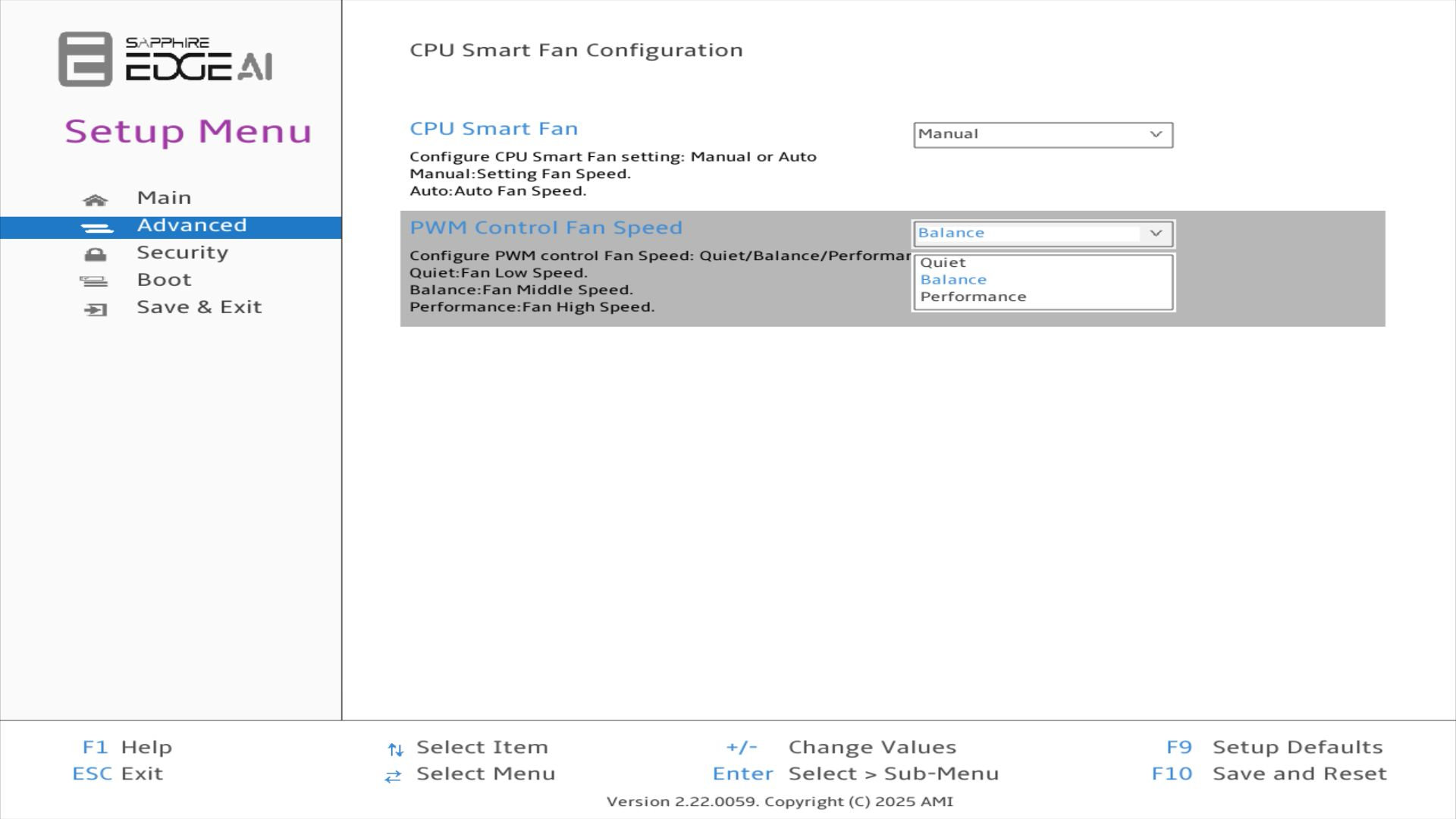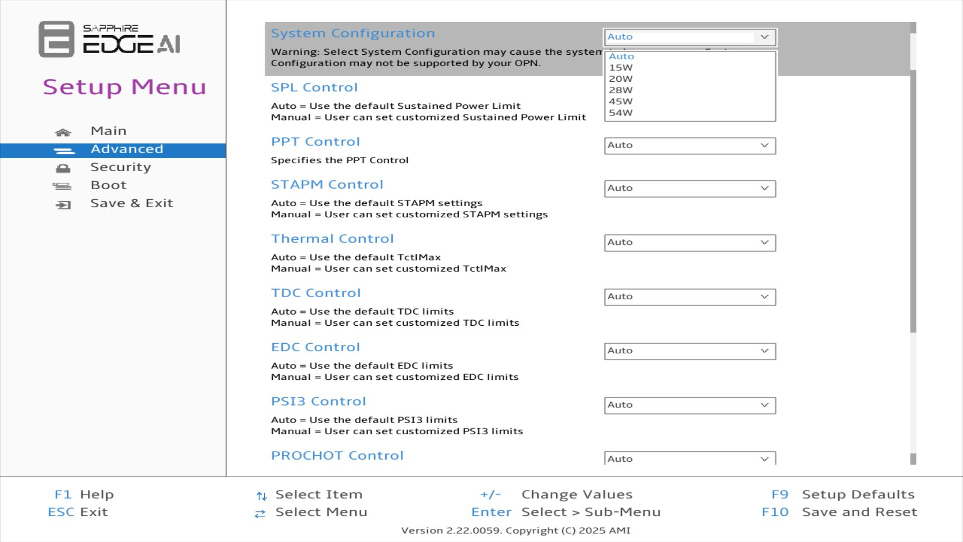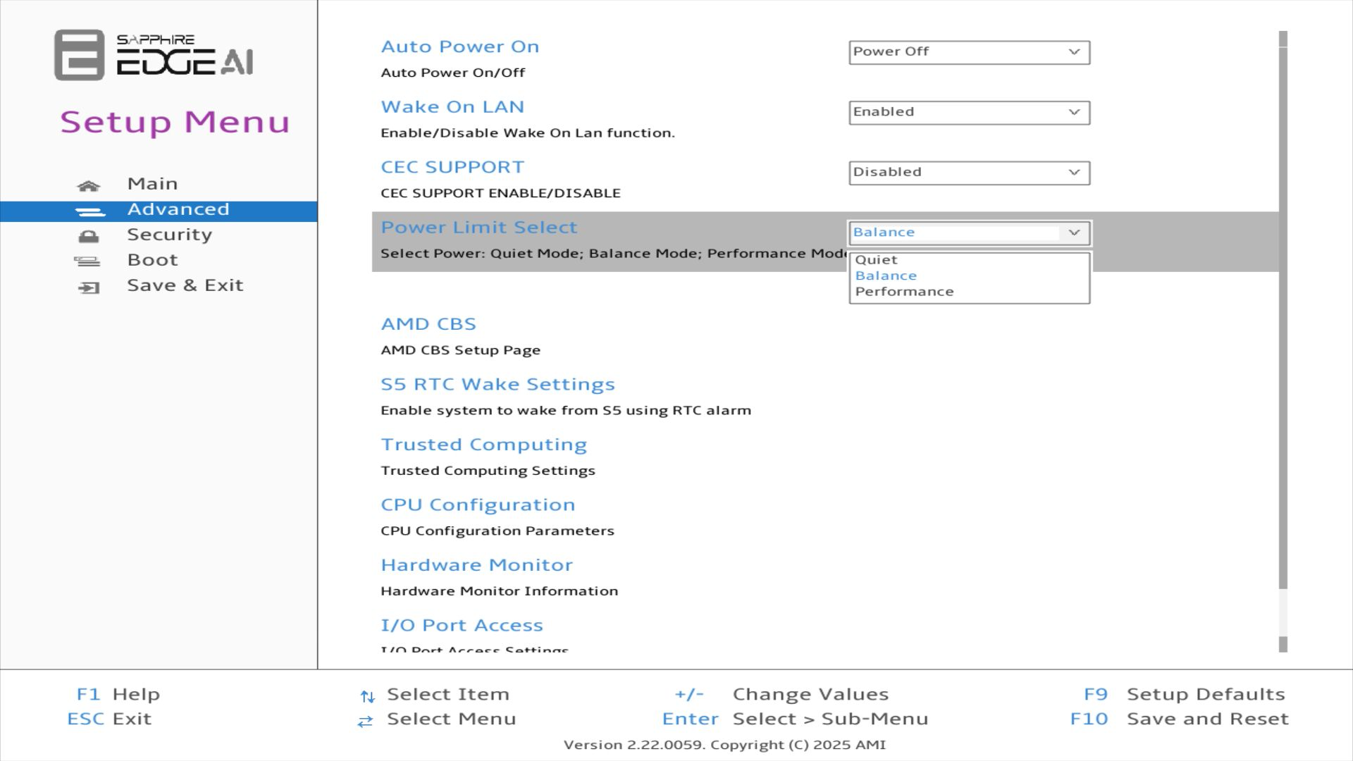 Con Sapphire Edge AI arriva il AMD Ryzen AI 9 HX 370 un chip a 12 core con architettura Zen 5 che offre prestazioni impressionanti nelle applicazioni single e multi-core. Nelle impostazioni di fabbrica, il SoC opera con un consumo energetico continuo di 35 watt e offre quindi prestazioni pari alla concorrenza. Sebbene sia possibile selezionare diversi profili di prestazioni nel BIOS, le differenze sono difficilmente percepibili nell'uso quotidiano, anche se sono misurabili.
