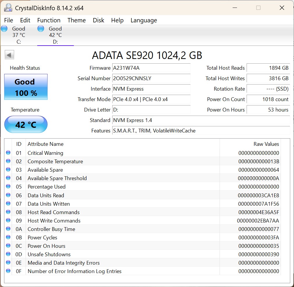 Sapphire Edge AI viene generalmente venduto senza memoria di massa, quindi la scelta del supporto di archiviazione spetta all'acquirente. Il dispositivo di prova che ci è stato fornito è dotato di un SSD di Kingston, che offre solide prestazioni quotidiane. Va sottolineata la stabilità delle prestazioni sotto carico, garantita dal raffreddamento passivo sulla parte superiore dell'alloggiamento. Il dispositivo stesso offre spazio per due dispositivi di archiviazione di massa.