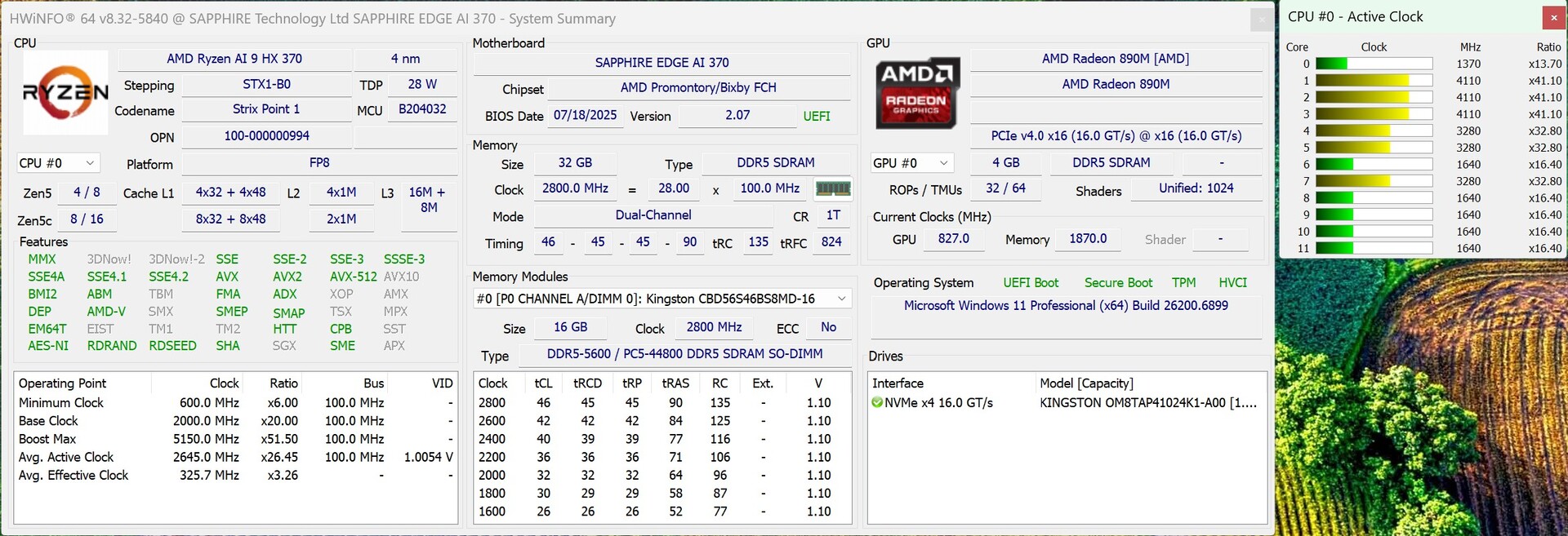 | Sapphire Edge AI, Ryzen AI 9 HX 370 | |