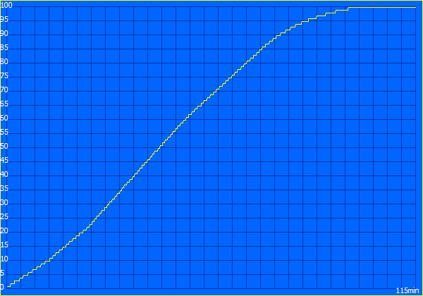 Il consumo energetico raggiunge un massimo di 65,2 W, leggermente superiore a quello che il caricabatterie da 65 W può fornire. Poiché il consumo energetico si riduce rapidamente, il dispositivo non rischia di perdere la carica durante l'uso.