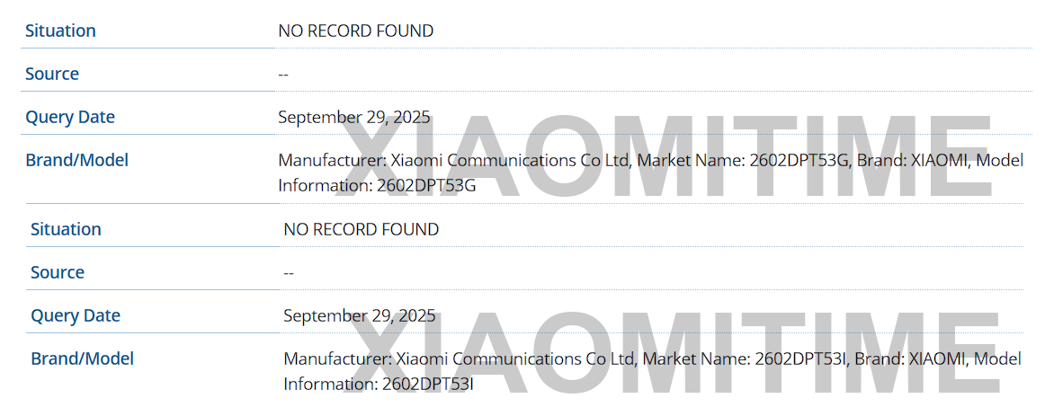 In particolare, due smartphone Xiaomi inediti sono apparsi nei database IMEI. Con i numeri di modello 2602DPT53G e 2602DPT53I, la coppia si riferisce allo stesso dispositivo di base. Almeno per il momento, non è stato trovato alcun modello cinese equivalente. Tuttavia, i suffissi G e I indicano che Xiaomi rilascerà il modello '2602DPT53' sia in India che a livello globale.