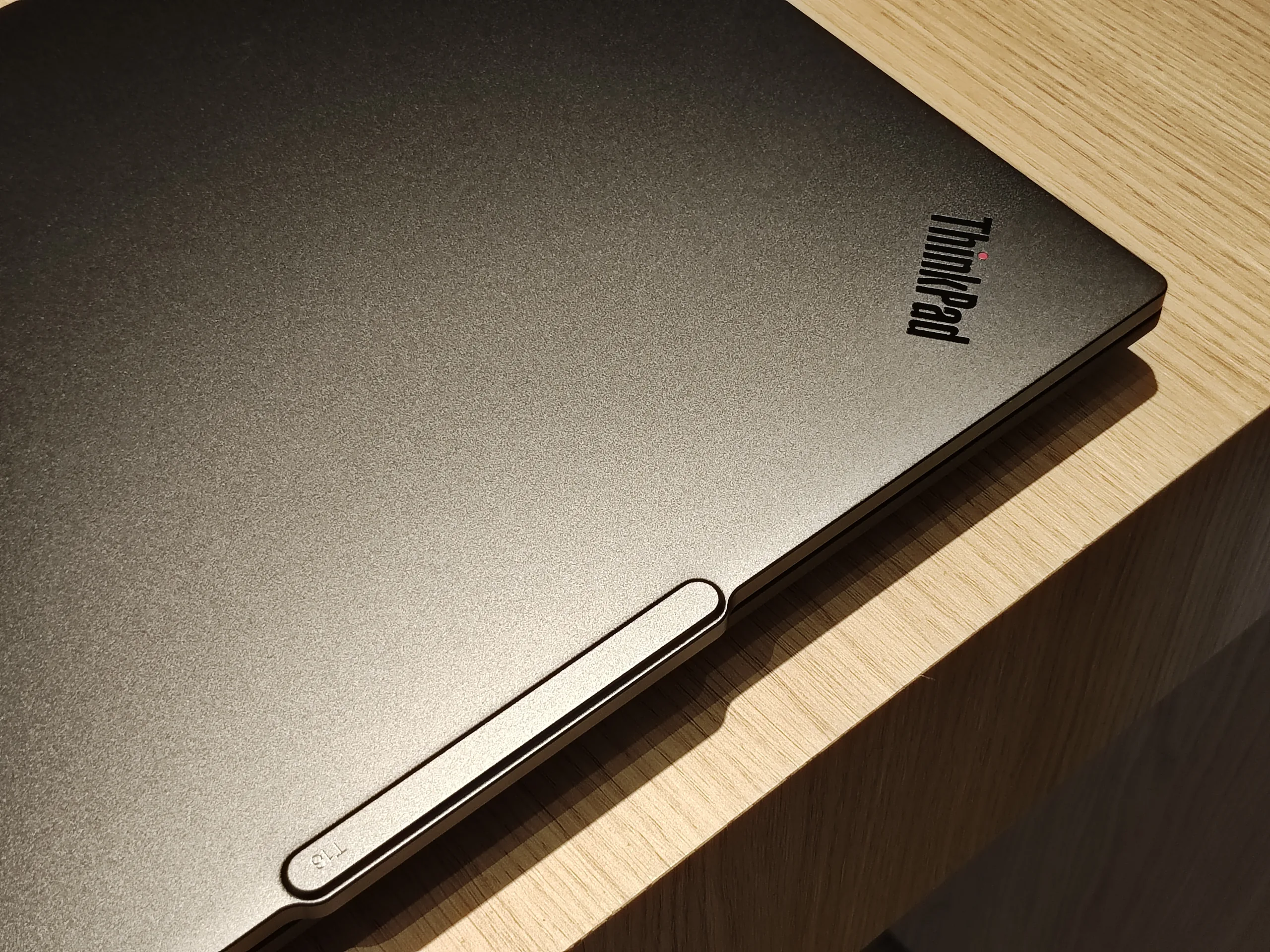 All'esterno e al primo sguardo, la nuova serie T non sembra molto diversa dai suoi predecessori, ma ci sono molti piccoli cambiamenti: Il coperchio dello schermo è di nuovo piatto, il logo Lenovo sul coperchio ha uno stile diverso. Un cambiamento di design più grande: Il T14 Gen 7 e il T16 Gen 5 adottano il design più ampio della cerniera a barra. Ciò consente di ridurre le cornici dello schermo, poiché le antenne Wi-Fi sono ora integrate nella cerniera anziché nella parte superiore dello schermo. Inoltre, le nuove cerniere consentono l'apertura con una sola mano.