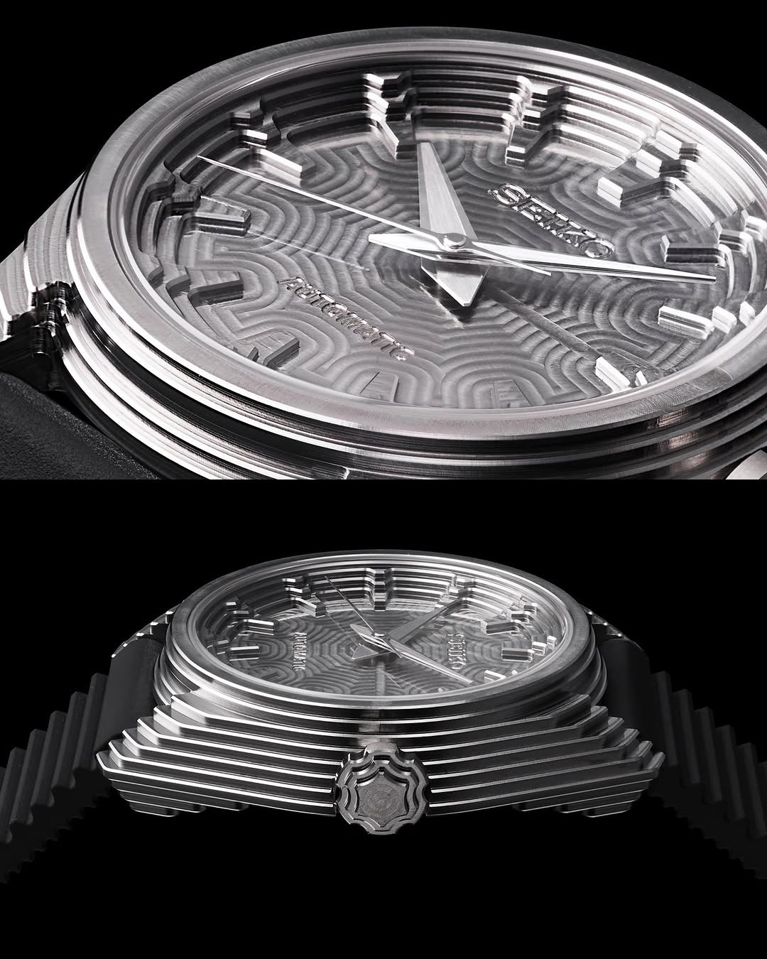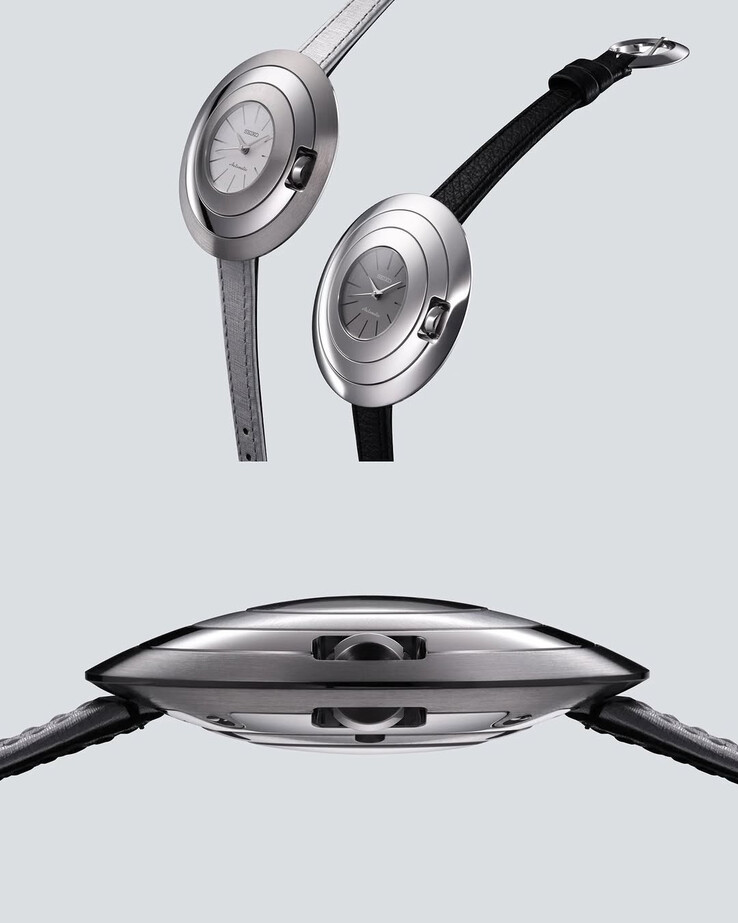 Un altro modello del direttore del design Yu Ishihara mostra una geometria sferica. La sua cassa arrotondata si curva dolcemente dalla parte anteriore a quella posteriore, e la superficie stessa utilizza una combinazione di finiture lucide e spazzolate per accentuare la forma del metallo. Un terzo orologio disegnato da Takuya Matsumoto, noto per il suo lavoro sulle linee premium di Seiko, è incentrato sulle texture del quadrante. Il quadrante è suddiviso in quattro quadranti ispirati a immagini stagionali come i fiumi primaverili, il sole estivo, i cieli autunnali e la neve invernale.