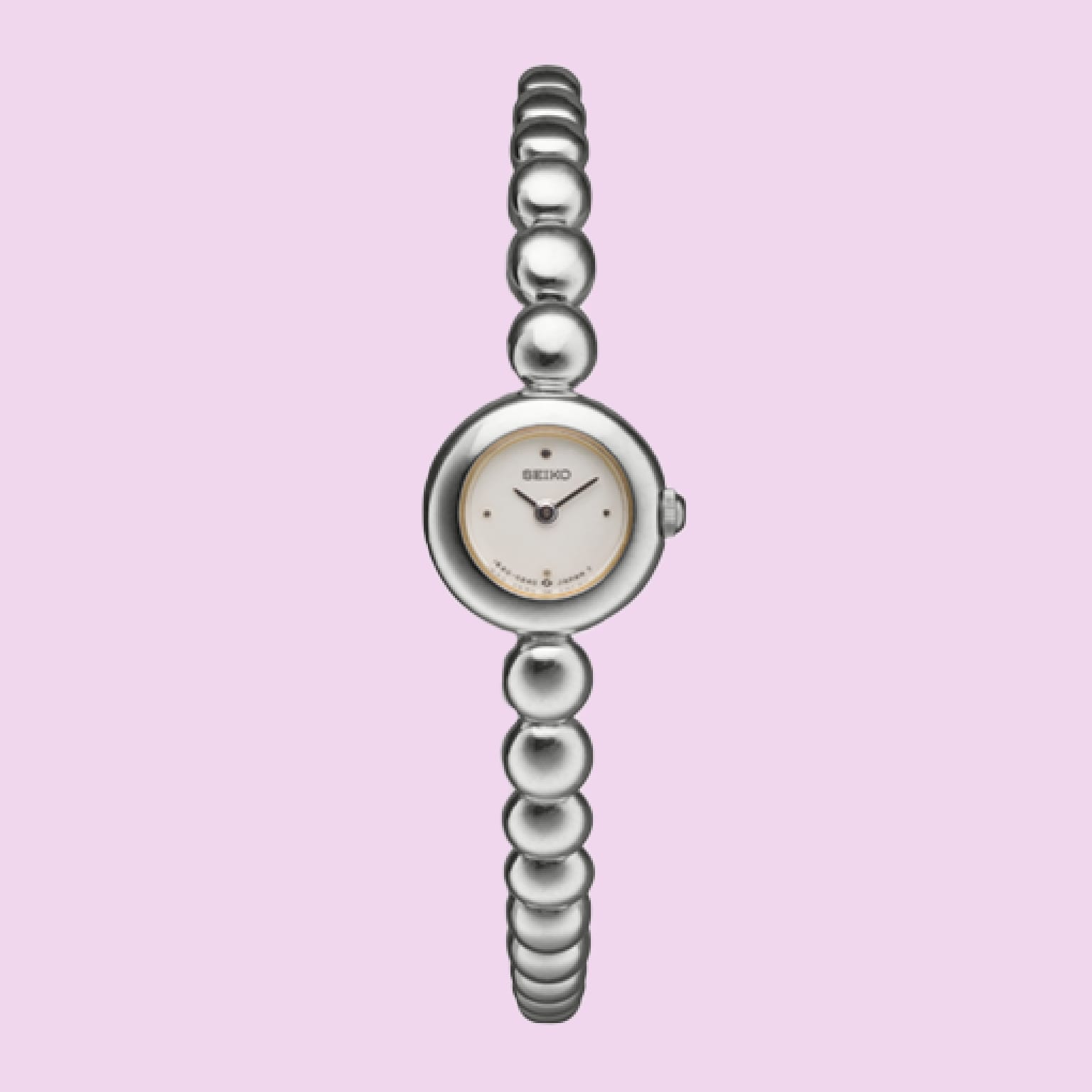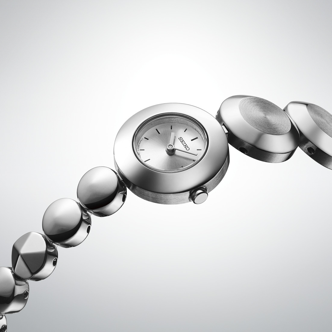 Arriviamo al 2025 e Seiko ha reinventato questo concetto per tutti. Ci sono tre nuovi modelli nella linea - SSEH021 in argentoSSEH023 in neroe SSEH024 in oro. Ogni pezzo presenta l'eccentrico bracciale a perline, ma con tocchi moderni: cassa in acciaio inossidabile con rivestimenti duri, diametro elegante di 20,2 mm, resistenza agli spruzzi, resistenza magnetica fino a 4.800 A/m e movimento al quarzo Calibro 4N30. Avrà circa tre anni di durata della batteria e un vetro cristallino Hardlex cristallino. La vestibilità è rilassata, pensata per colmare il divario tra accessorio e orologio, dato che può indossarlo come vuole.