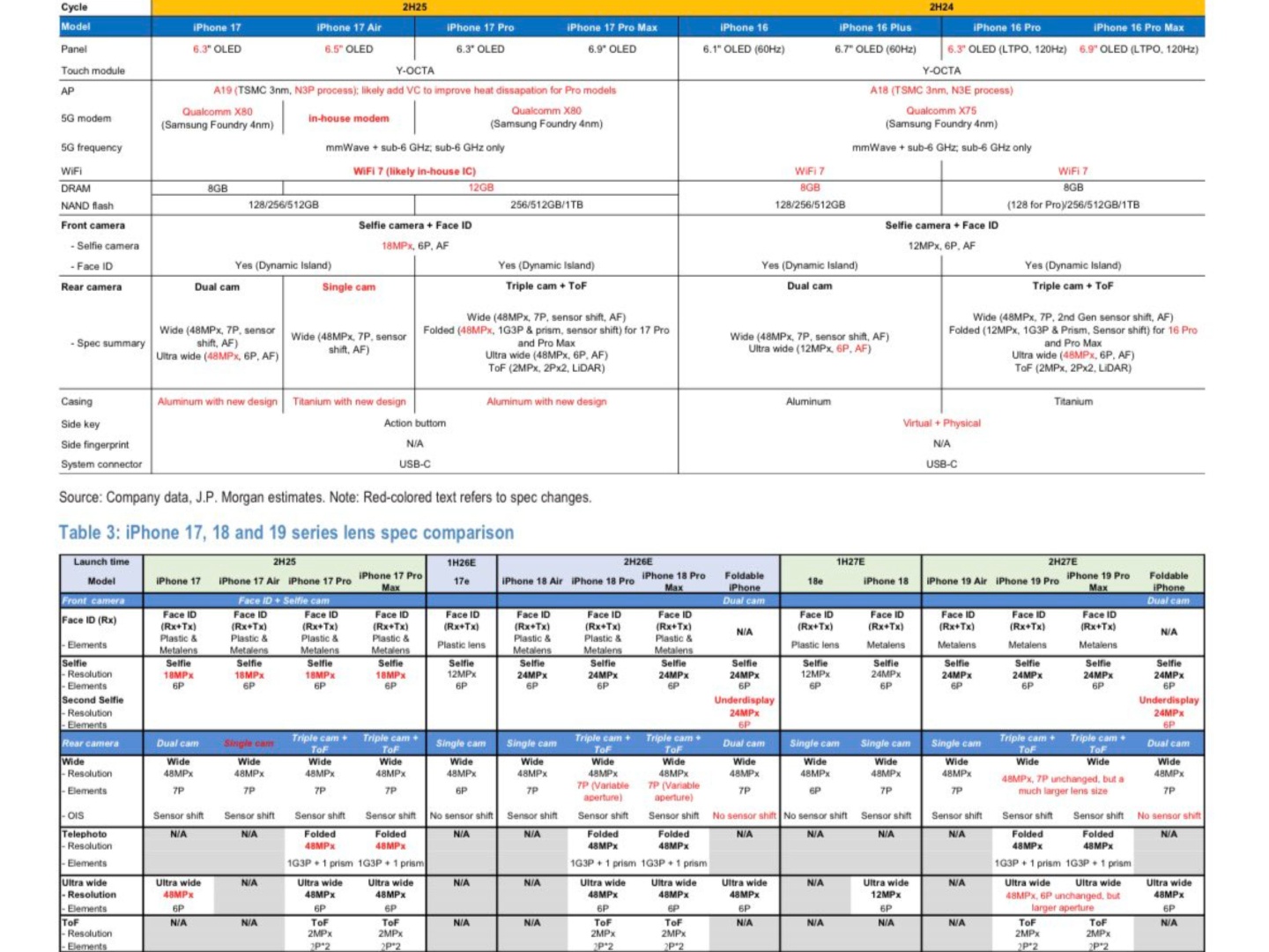 L'analista del settore Max Weinbach ha pubblicato un confronto delle specifiche tecniche di JP Morgan per i prossimi modelli di iPhone, in cui vengono elencati un iPhone Air 2 e un iPhone Air 3. Weinbach sottolinea che JP Morgan e altre banche di questo tipo sono "molto brave" a ottenere questo tipo di informazioni dalla catena di fornitura. Questo suggerisce che la catena di fornitura di Apple si sta preparando per l'iPhone Air 2 e l'Air 3, o qualunque sia il loro nome finale, nonostante le vendite approssimative dell'iPhone Air.
