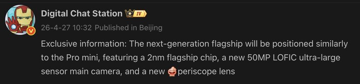 Il modello compatto potrebbe essere dotato di un chipset di punta basato su un processo a 2 nm, potenzialmente un chipset di chipset di prossima generazione Chipset Dimensity di prossima generazione. Per quanto riguarda la fotocamera, potrebbe essere dotata di un sensore da 50 MP con tecnologia LOFIC. Potrebbe anche essere dotato di un nuovo teleobiettivo a periscopio.