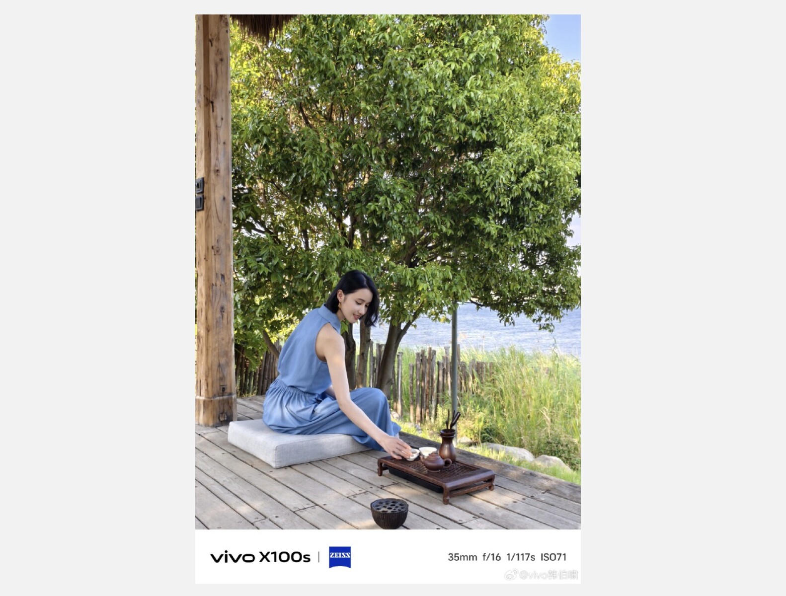 Tuttavia, l'intelligenza artificiale non si limita ai cambiamenti di colore, ma aggiunge anche alcuni dettagli, come la neve o i fiori di ciliegio, che vengono posizionati sul terreno e sulla testa della persona fotografata. Mentre il colore del pavimento in legno in primo piano viene adattato al nuovo sfondo, l'AI ignora il vestito della donna fotografata, ma non si notano errori evidenti nelle foto campione. Tuttavia, le foto non sono particolarmente realistiche dopo l'elaborazione da parte di questa AI, in quanto Vivo cambia semplicemente il tipo di albero fotografato e non è molto attento in questo caso.