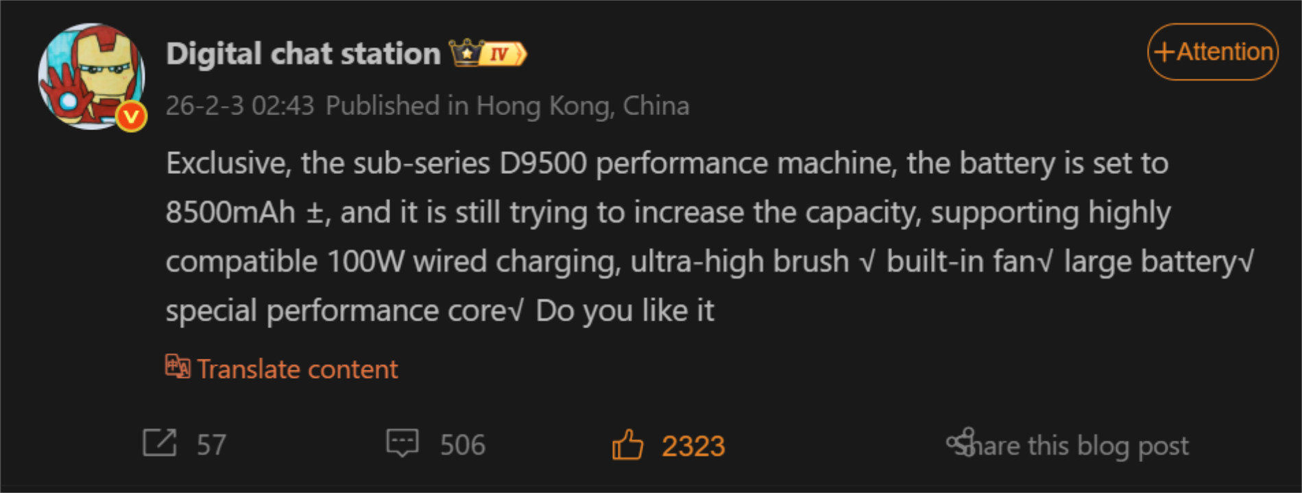 Inoltre, Digital Chat Station indica che Xiaomi sta sviluppando il Redmi K90 Ultra con un 'modello di prestazioni della sotto-serie Dimensity 9500'. Da questo, possiamo dedurre che il leaker si riferisce all'inedita Dimensity 9500+ piuttosto che alla minore Dimensity 9500s che equipaggia il Redmi Turbo 5 Max Redmi Turbo 5 Max. Le prove suggeriscono che il Redmi K90 Ultra sarà dotato anche di una ventola integrata, a differenza dei suoi predecessori.