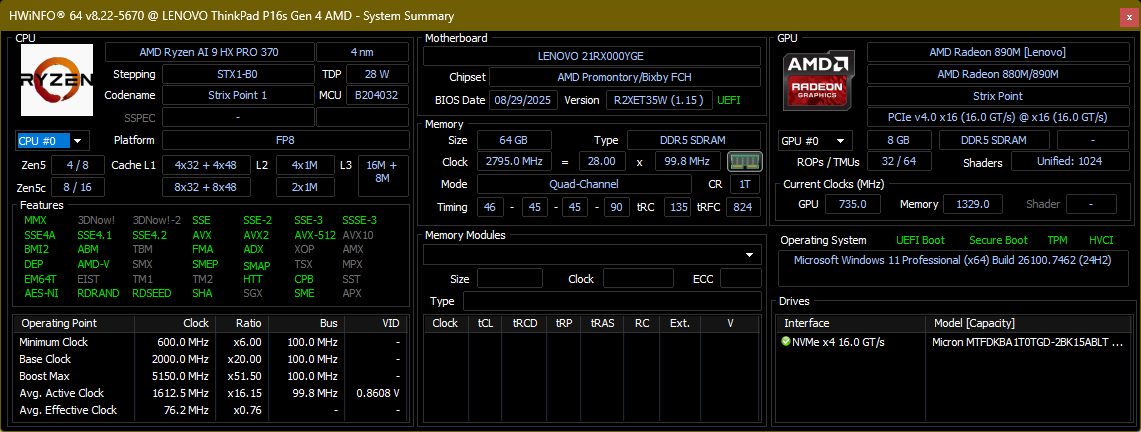 Specifiche tecniche: Ryzen AI 9 Pro HX 370 in un ThinkPad da 16 pollici