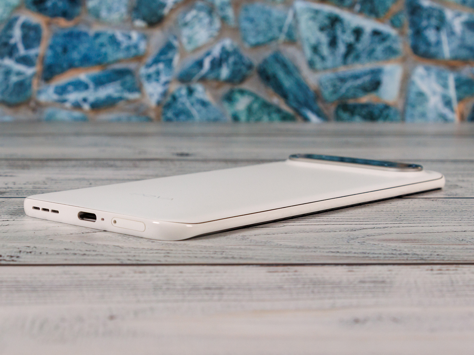 Le fessure sul retro sono un po' troppo ampie per i nostri gusti e non sono del tutto uniformi. La cornice è in metallo verniciato, il display è protetto da Gorilla Glass 7i e il retro è in fibra di vetro. Quando viene ruotato, il telefono Tecno sembra stabile, ma scricchiola un po'.