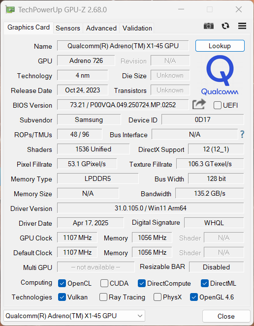 Lenovo IdeaPad Slim 3 15Q8X10 Qualcomm Snapdragon X X1-26-100 ⎘ Qualcomm SD X Adreno X1-45 1.7 TFLOPS ⎘ 16 GB Memoria, 256 GB SSD | Amazon: $689.00 Prezzo di listino: 710 Euro | 1.6 kg | 18.5 mm | 15.30" 1920x1200 148 PPI IPS LED | |