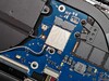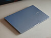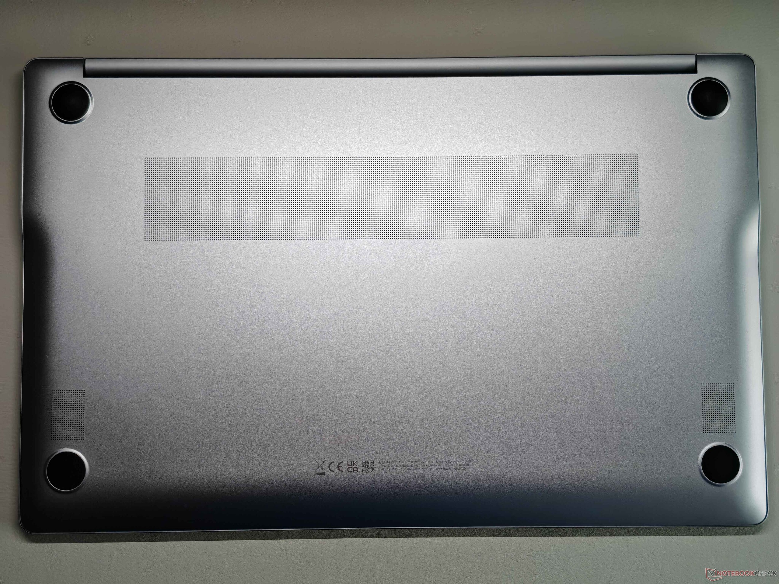 Samsung utilizza una sottile custodia in metallo per il Galaxy Book4 Edge, che ha uno spessore di 1,5 cm e un peso di 1,49 kg, che lo rende facile da inserire in qualsiasi zaino. Il colore della custodia è Sapphire Blue, una tonalità di blu molto chiara (piuttosto argento con una leggera sfumatura blu). Visivamente, il notebook ha un ottimo aspetto e anche la qualità è buona. Solo la cerniera del display (angolo di apertura massimo di 180 gradi) è un po' troppo liscia e, quindi, traballa un po'. Il coperchio del case inferiore può essere rimosso (viti sotto i piedini in gomma), ma le opzioni di manutenzione si limitano alla pulizia della ventola, del modulo WLAN e della batteria, che può essere sostituita se necessario.