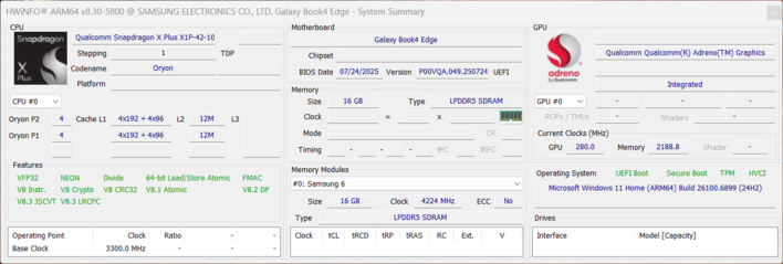 Samsung Galaxy Book4 Edge 15 Qualcomm Snapdragon X Plus X1P-42-100 ⎘ Qualcomm SD X Adreno X1-45 1.7 TFLOPS ⎘ 16 GB Memoria, 256 GB | Amazon: 1. $684.90 SAMSUNG 15” Galaxy AI Book... 2. $629.00 SAMSUNG Galaxy Book4 Edge La... 3. $10.99 KEANBOLL 3-Pack Designed for... Prezzo di listino: 749€ | 1.5 kg | 15 mm | 15.60" 1920x1080 141 PPI IPS | |