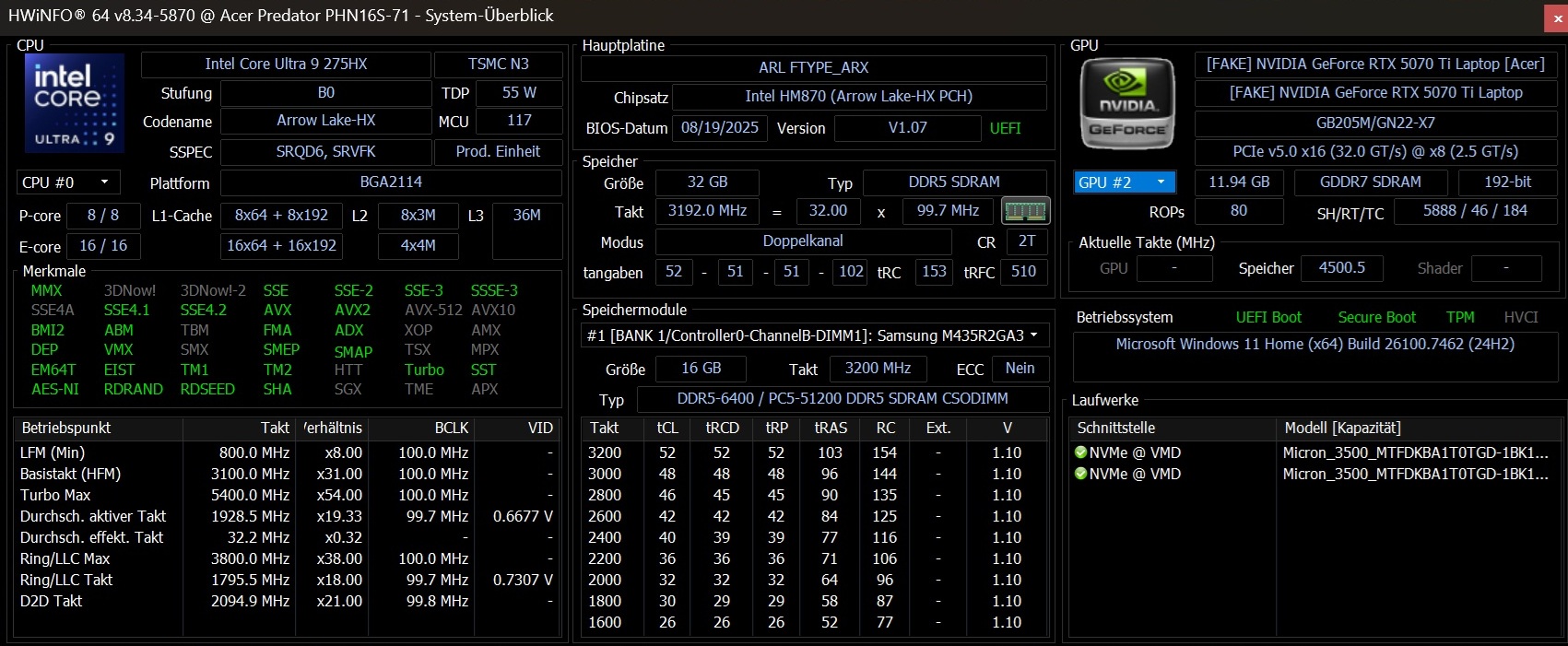 | Schenker XMG FUSION 16 (M25) Intel Core Ultra 9 275HX ⎘ NVIDIA GeForce RTX 5070 Laptop ⎘ 64 GB Memoria, 2048 GB SSD | Prezzo di listino: 2700€ | 2.1 kg | 23 mm | 16.00" 2880x1800 212 PPI OLED | |
