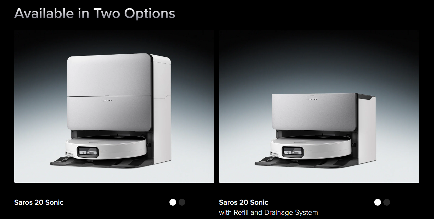 Un'altra novità di Roborock Saros 20 Sonic è l'AdaptiLift Chassis 3.0, che può sollevare il robot oltre una soglia a doppio strato di 4,5+4 cm (1,8+1,6 pollici). Ha lo stesso corpo sottile di 7,98 cm (~3,1 pollici) del suo predecessore, con un sensore LDS retrattile, utilizzato per la navigazione. Inoltre, è dotato di un RockDock aggiornato, che offre il lavaggio del mop staccato con acqua calda a 100°C (~212°F), l'autopulizia del dock e lo svuotamento della pattumiera a bordo del robot.