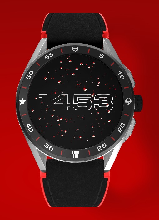 Questo "Connected x Super Mario" corrisponde a quella descrizione abbastanza bene, dato che la sua cassa include modifiche a tema come un cronografo su cui un chevron di bandiera, un fungo, una cima di tubo e una super stella sostituiscono rispettivamente le posizioni 12, 3, 6 e 9, e potrebbero anche essere programmati per brillare in determinate condizioni.