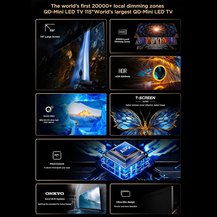 TCL ha ampliato il suo portafoglio di TV di fascia alta lanciando il nuovo TV X955 Max da 115 pollici in India. Vanta un pannello LED 4K QD Mini con una frequenza di aggiornamento variabile di 144 Hz, una luminosità di picco di 5000 nit, copre il 98% della gamma di colori DCI-P3 e supporta Dolby Vision IQ e HDR 10+. Secondo TCL, è il primo televisore QD MINI LED al mondo a vantare oltre 20.000 zone di regolazione locale.