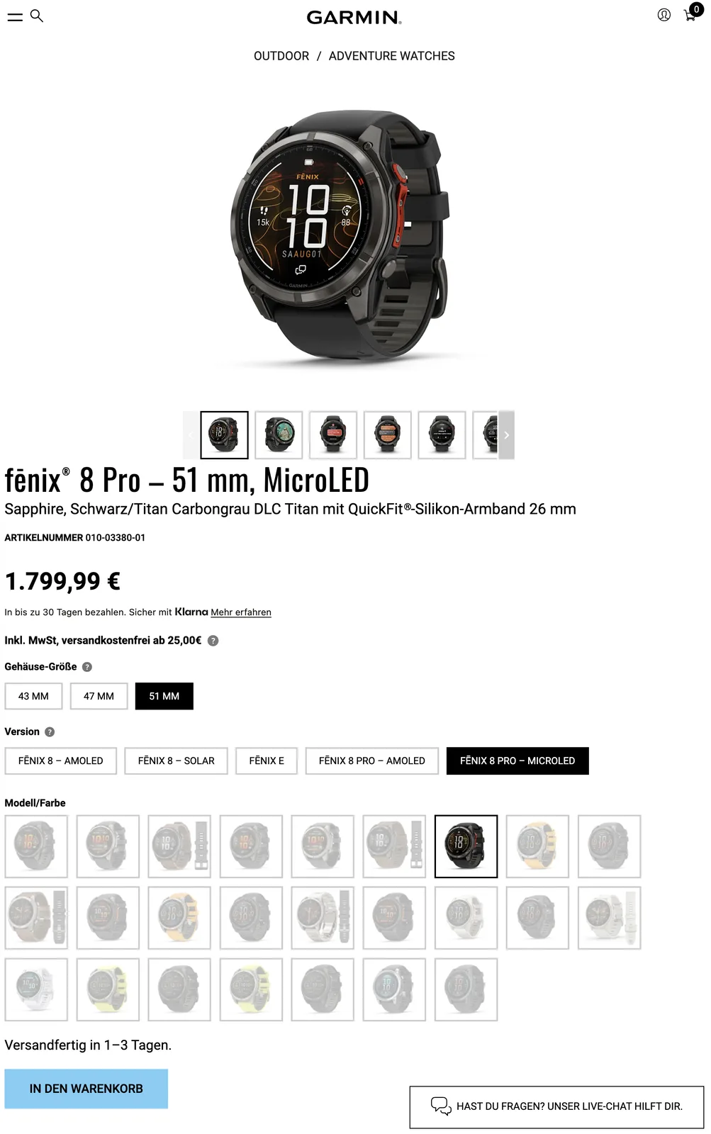 Nel frattempo, esiste un divario di 300 sterline tra le varianti di Fenix 8 Pro nel Regno Unito, con la variante MicroLED che è scesa a 1.499,99 sterline. A quanto pare, anche questi cambiamenti di prezzo sono permanenti, considerando che Garmin non menziona nessuno dei due come prezzo di vendita. Si noti che Garmin offre il Fenix 8 Pro MicroLED solo come smartwatch da 51 mm. Maggiori dettagli sul Fenix 8 Pro e sul suo display opzionale da 4.500 nit sono disponibili nel il nostro articolo di lancio.