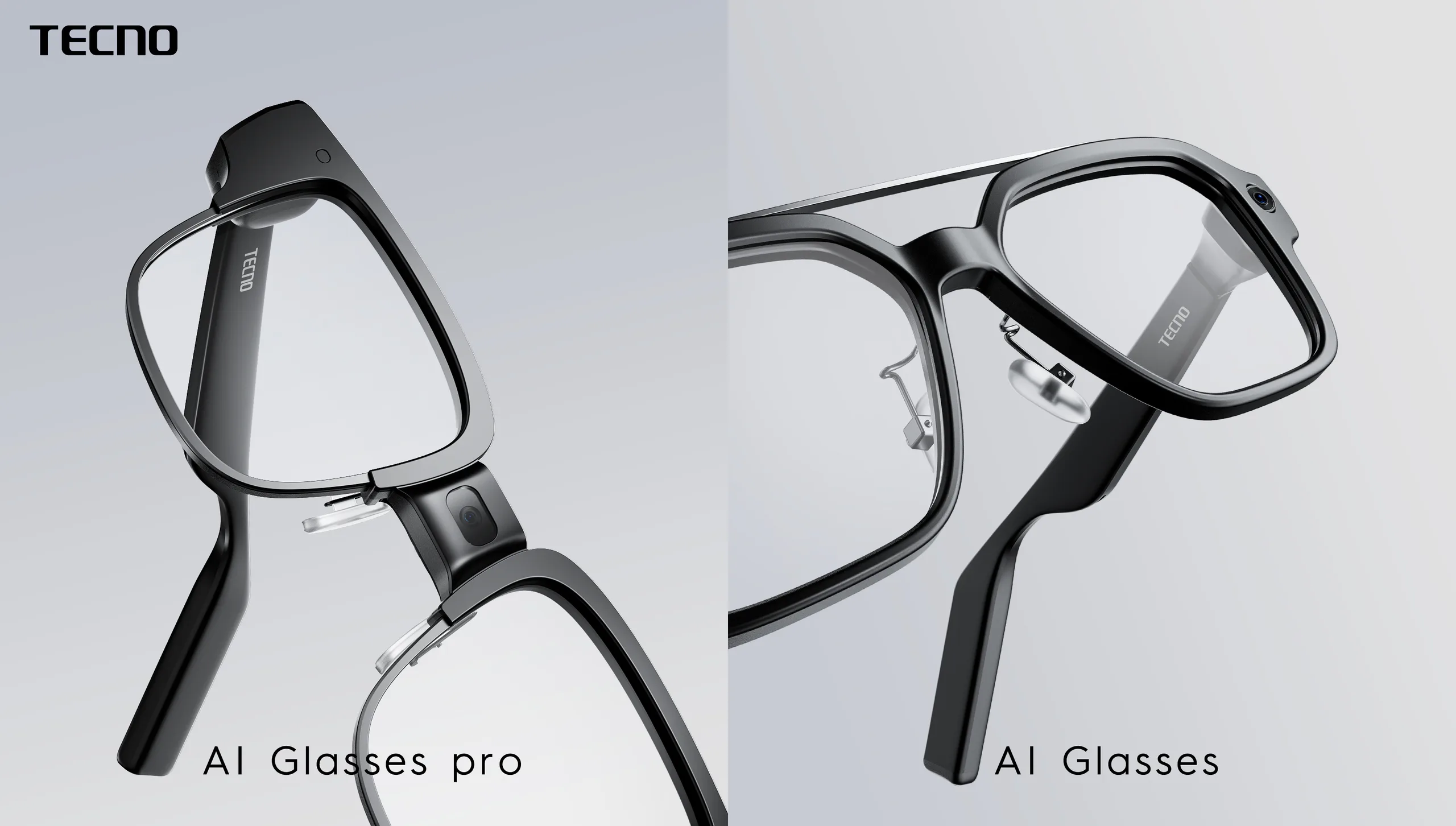 Chiamati Tecno AI Glasses e Tecno AI Glasses Pro, i due nuovi indossabili hanno l'aspetto di un paio di occhiali medi, ma racchiudono una grande quantità di tecnologia AI. Dal punto di vista del design, i Tecno AI Glasses e Tecno AI Glasses Pro sono realizzati in lega di magnesio e materiali compositi ultraleggeri che li rendono leggeri come occhiali da sole. Saranno disponibili in due modelli: con montatura a sopracciglio e stile aviatore.