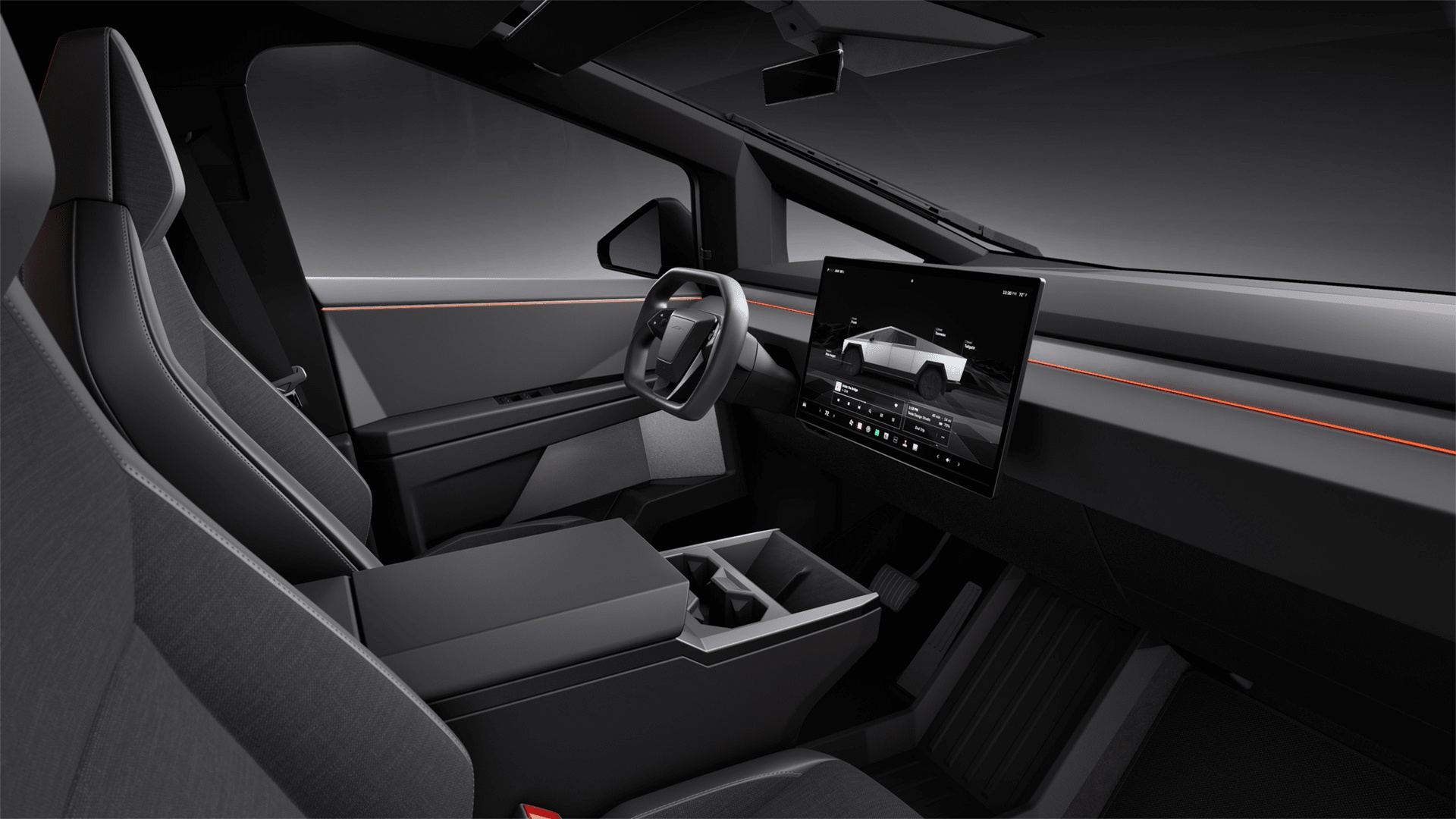 Come l'anno scorso, il display posteriore da 9,4 pollici e la barra luminosa posteriore sono stati eliminati, così come le prese in cabina da 120 V e il vano letto Vault. Tesla ha mantenuto le prese per il letto da 120 V, così come tutte le altre esclusive caratteristiche di Cybertruck, come ad esempio la ruota posteriore sterzanteuna copertura tonneau motorizzata, la ricarica rapida e le funzionalità Powershare.