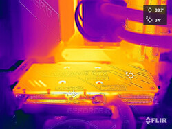 Il sistema di raffreddamento integrato con le sue due ventole assiali da 92 millimetri (~3.6 in) assicura un ottimo raffreddamento sotto carico. Durante lo stress test, la temperatura della GPU era di soli 70 °C (158 °F), anche se la temperatura dell'hotspot è risultata leggermente più alta, quasi 84 °C (183 °F). Tuttavia, c'è ancora un margine sufficiente fino a quando c'è un po' di throttling dovuto alle temperature