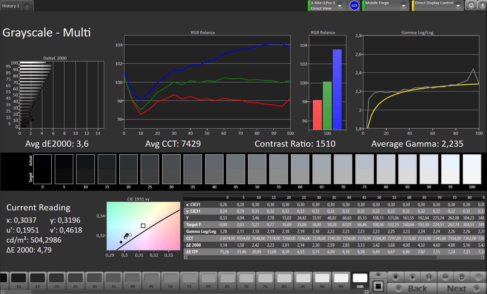 ΔE Greyscale Calman: 3.6 | ∀{0.09-98 Ø5}