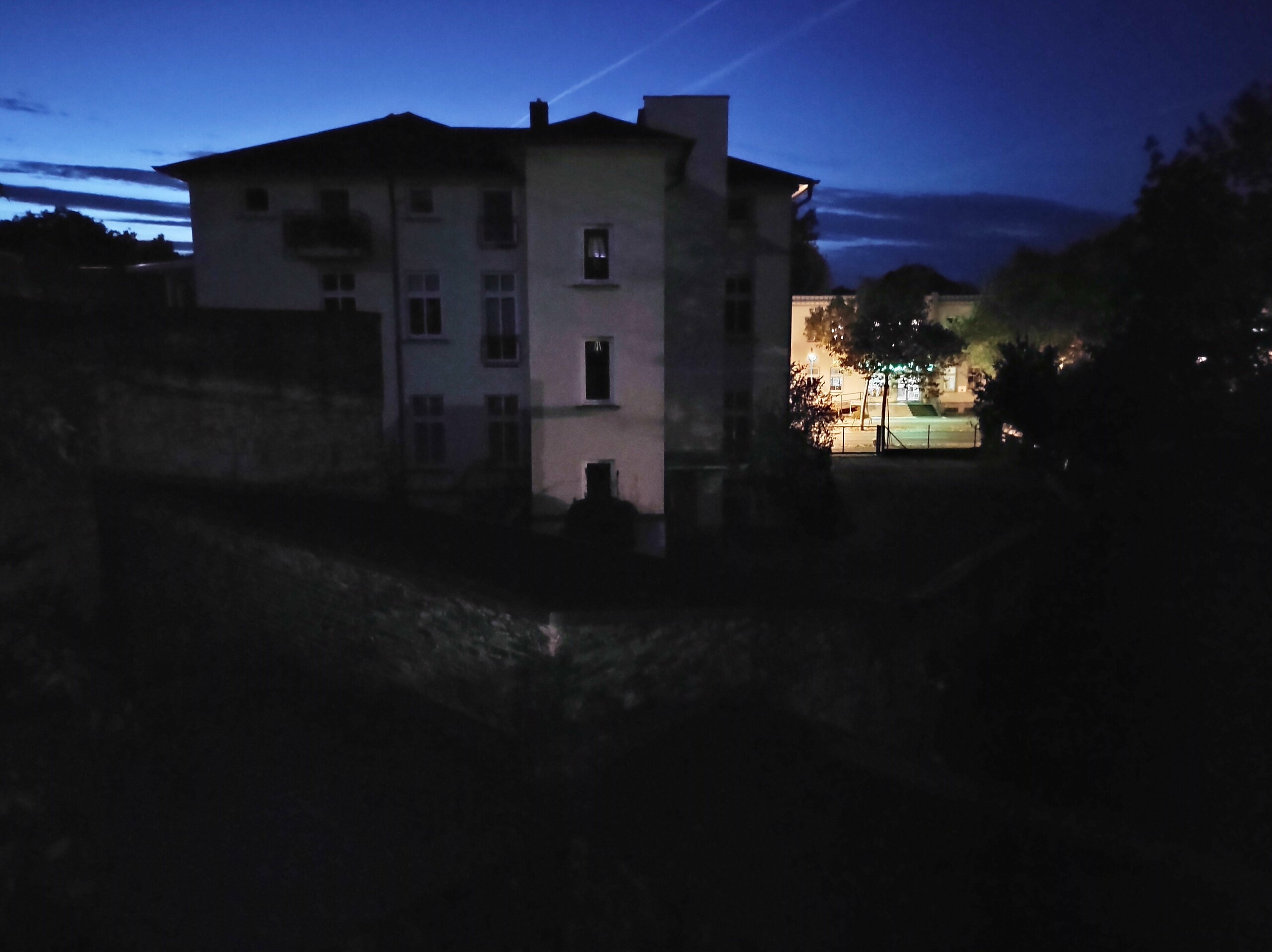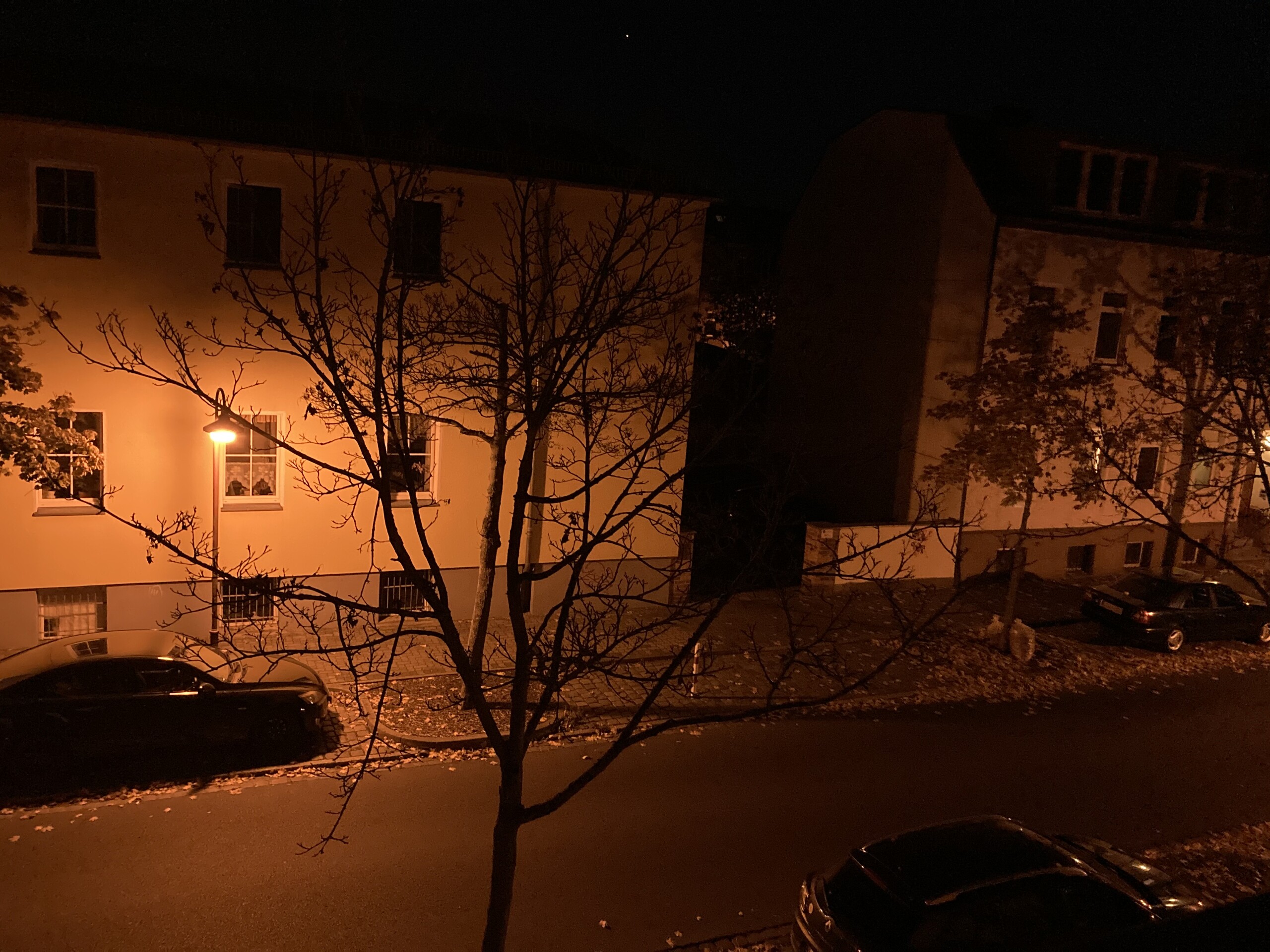 Di notte, gli smartphones di fascia alta producono immagini molto migliori rispetto ai dispositivi di fascia media. Qui l'iPhone SE si comporta particolarmente male. Lo smartphone di Applenon riesce a cogliere alcun dettaglio nella nostra fotografia del condominio. A differenza di molti concorrenti Android, non offre una modalità notturna. Le fotografie notturne scattate con il Moto G9 Plus appaiono così fioche da essere completamente inutilizzabili.