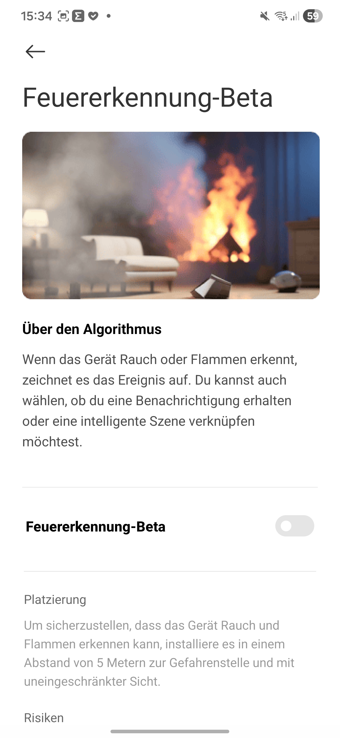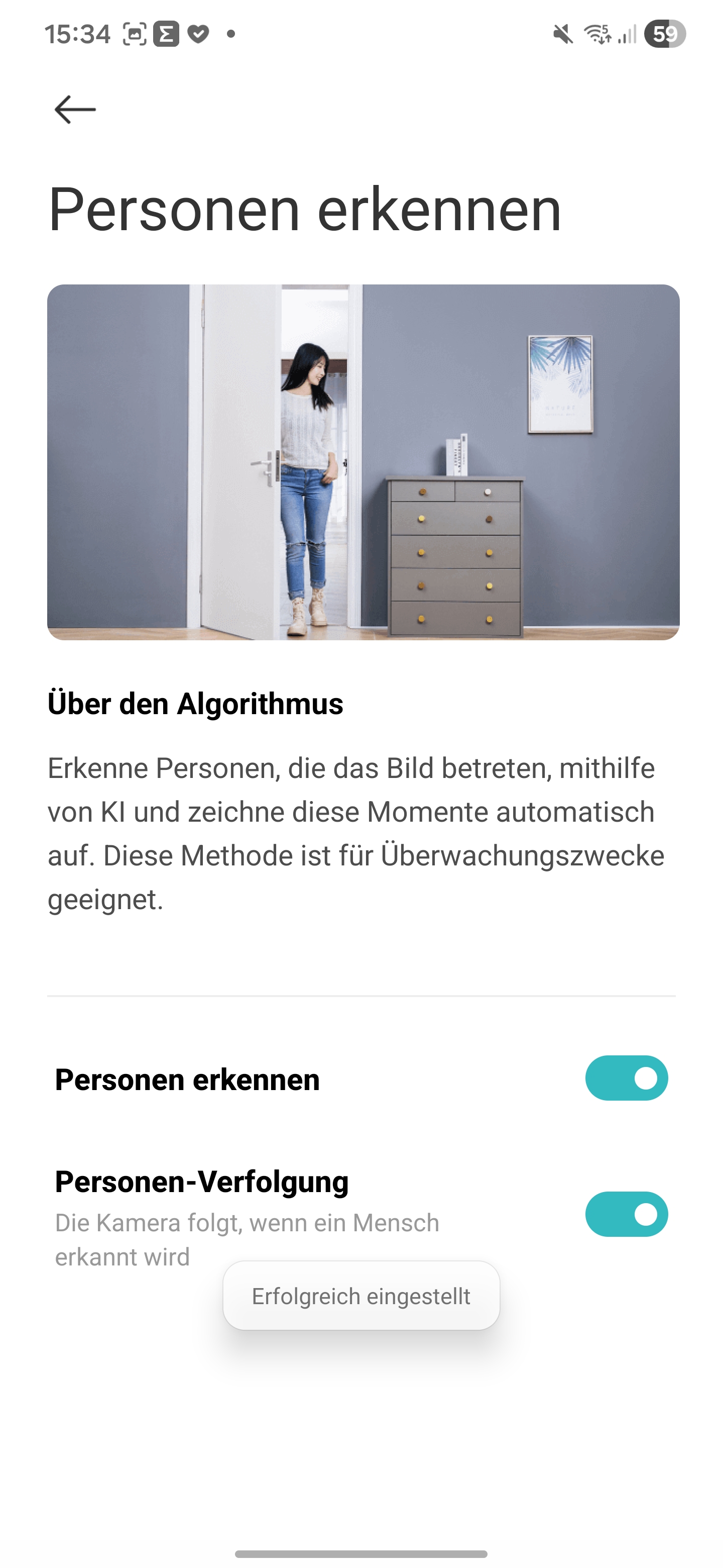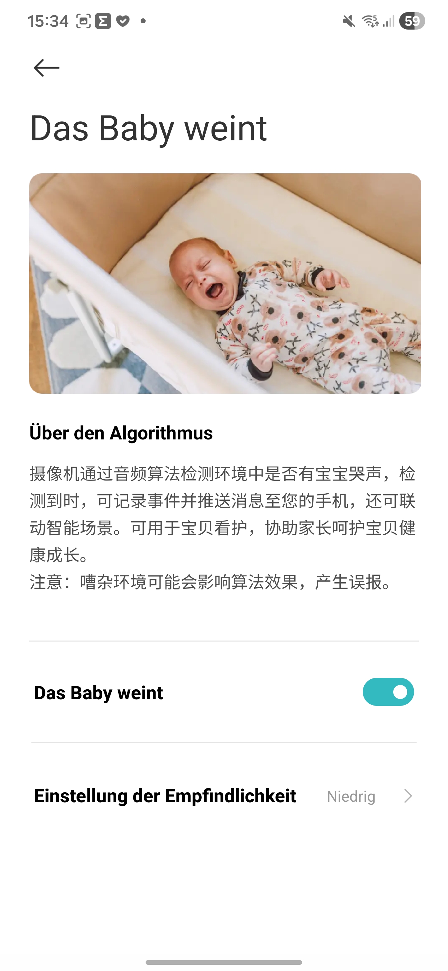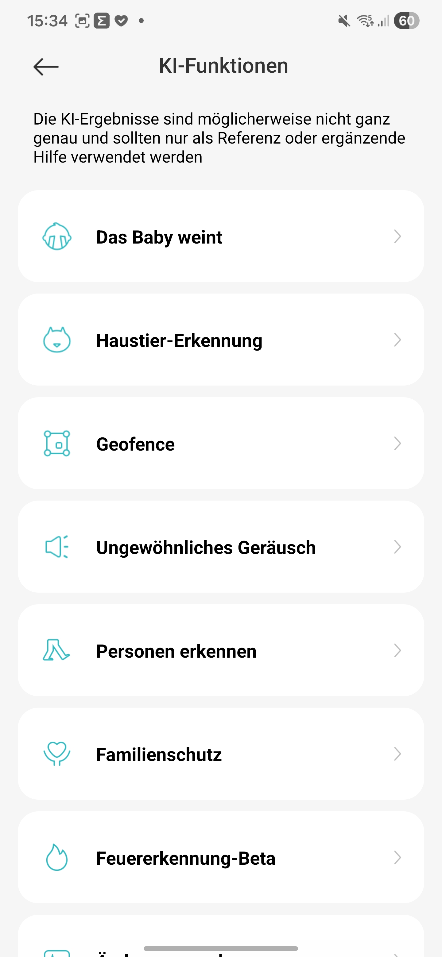 La telecamera è progettata per distinguere automaticamente tra persone e animali domestici. Il software è anche progettato per rilevare i pianti dei bambini e i rumori insoliti. Nel nostro test, i bambini che giocavano hanno attivato gli avvisi sia per il pianto del bambino che per i rumori insoliti. Inoltre, alcune parti del software non sono ancora state completamente tradotte.