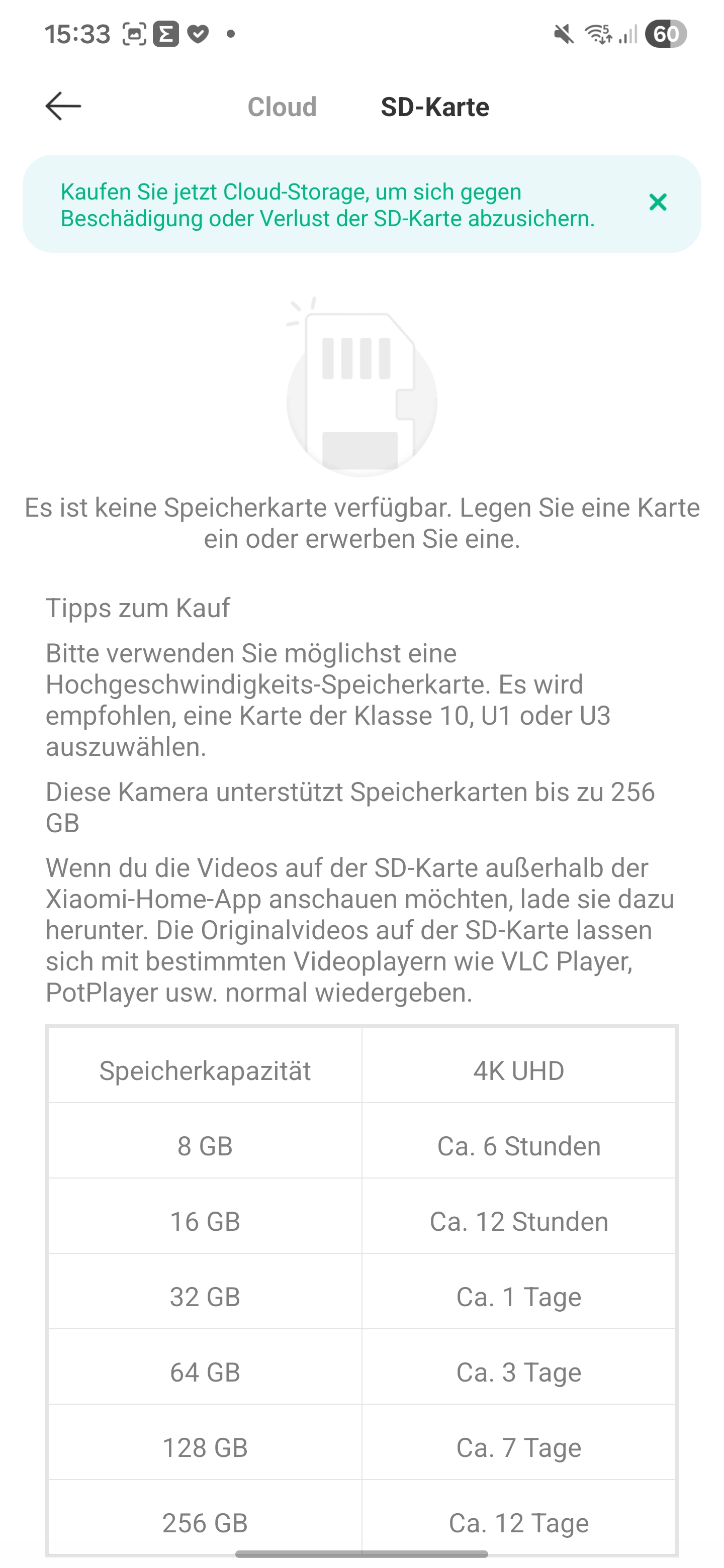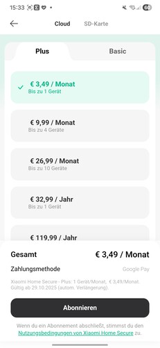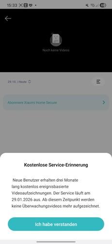 Per le funzioni AI, come il rilevamento e il tracciamento degli oggetti, è necessario un abbonamento a Xiaomi Home Secure. Tre mesi di accesso gratuito sono inclusi nell'acquisto. Successivamente, il piano Plus, che offre 30 giorni di archiviazione cloud, costa 3,50 euro al mese o 33 euro all'anno. L'archiviazione locale sulla memoria interna o su una scheda microSD è gratuita, e i filmati più vecchi vengono sovrascritti automaticamente.